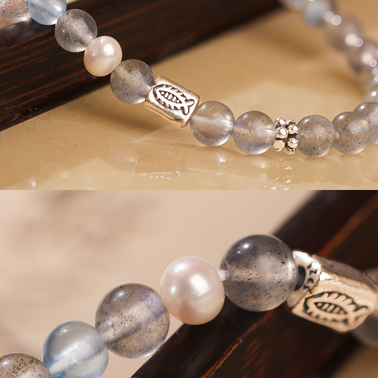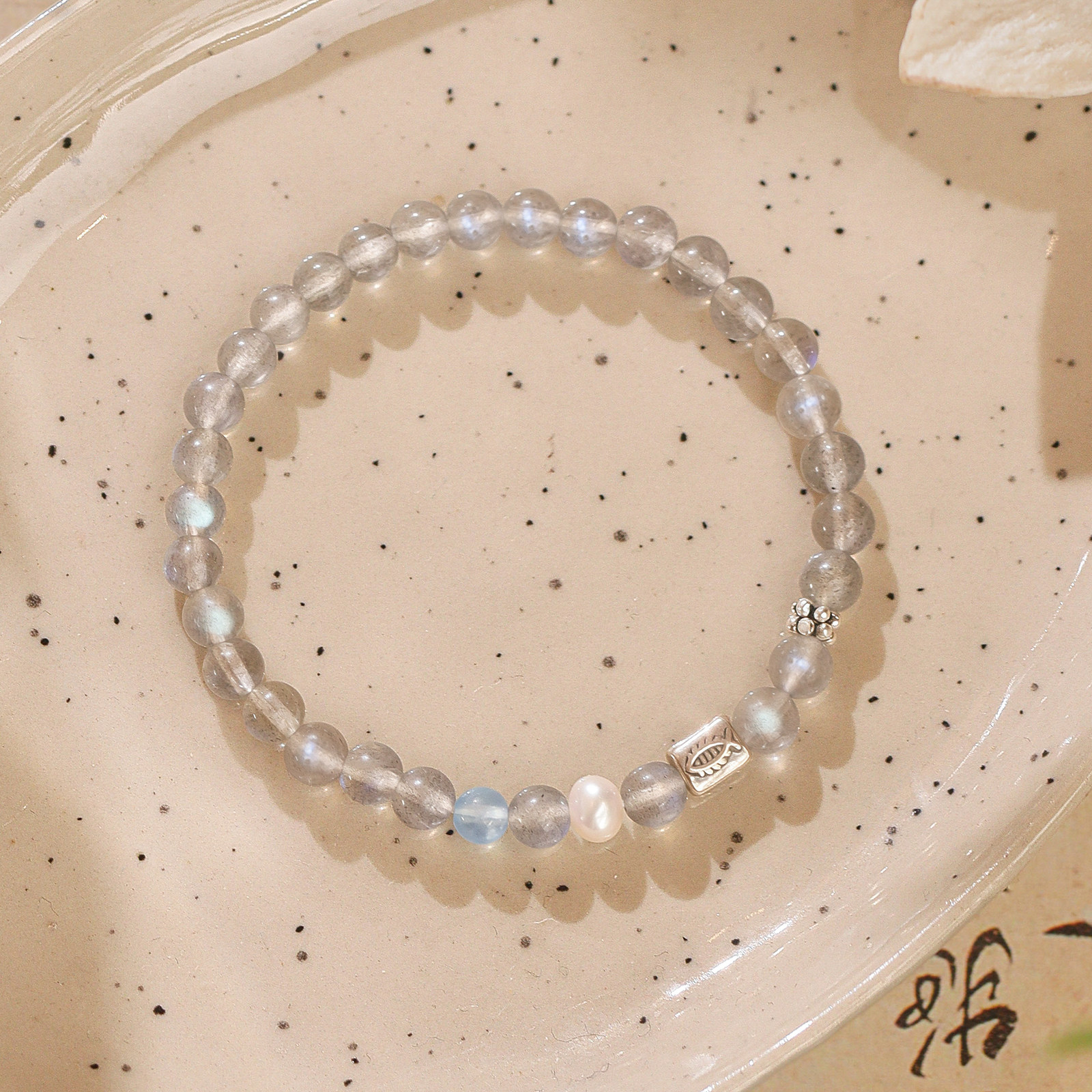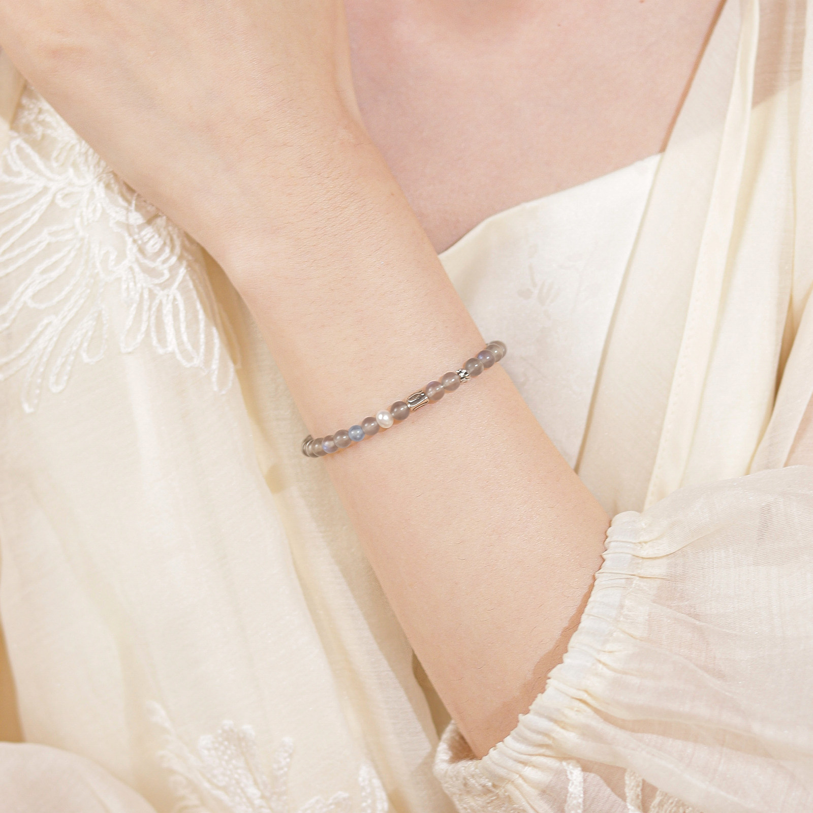 月澜为晚天然灰月光石手串女款珍珠海蓝宝绝美小众手链转运串珠
