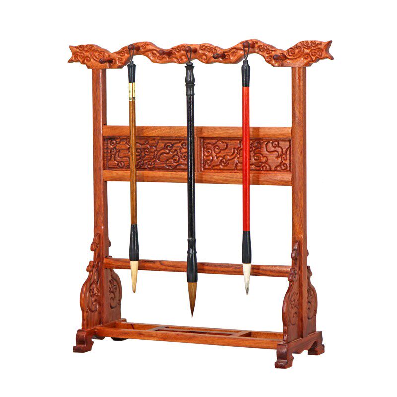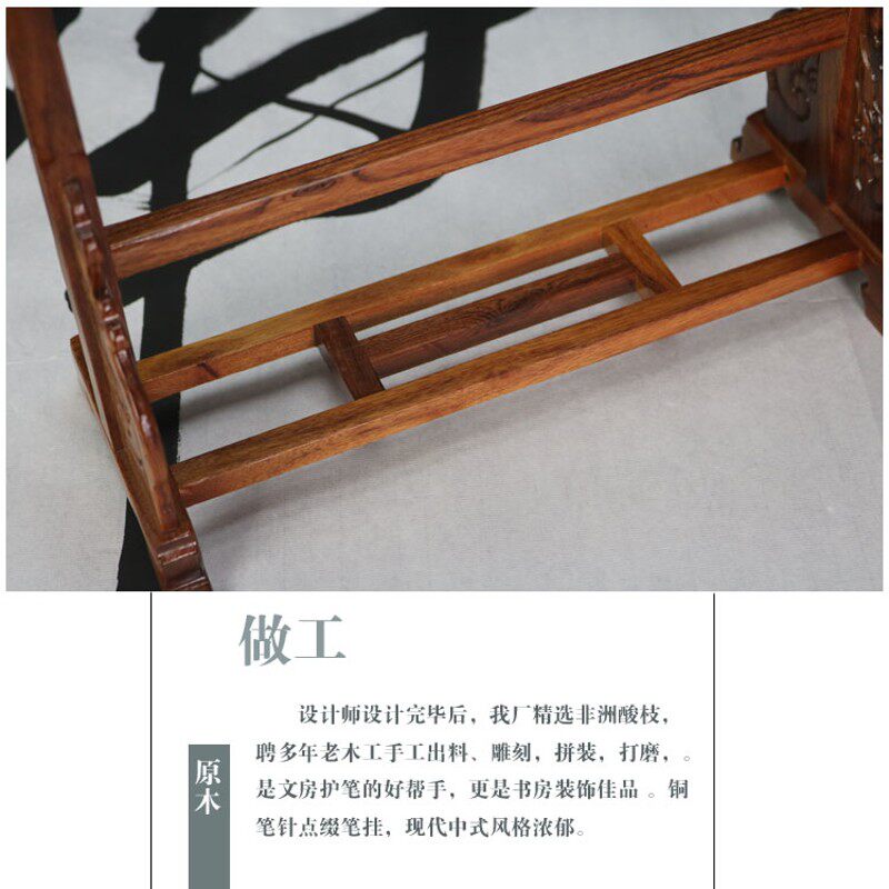 红酸枝木实木雕刻祥云毛笔架笔搁古典大毛笔挂文房四宝书法用品