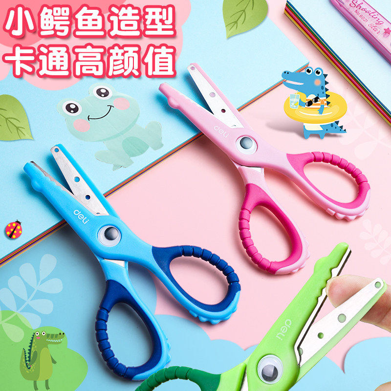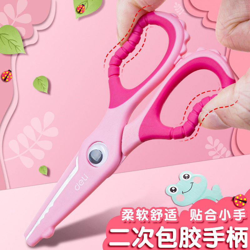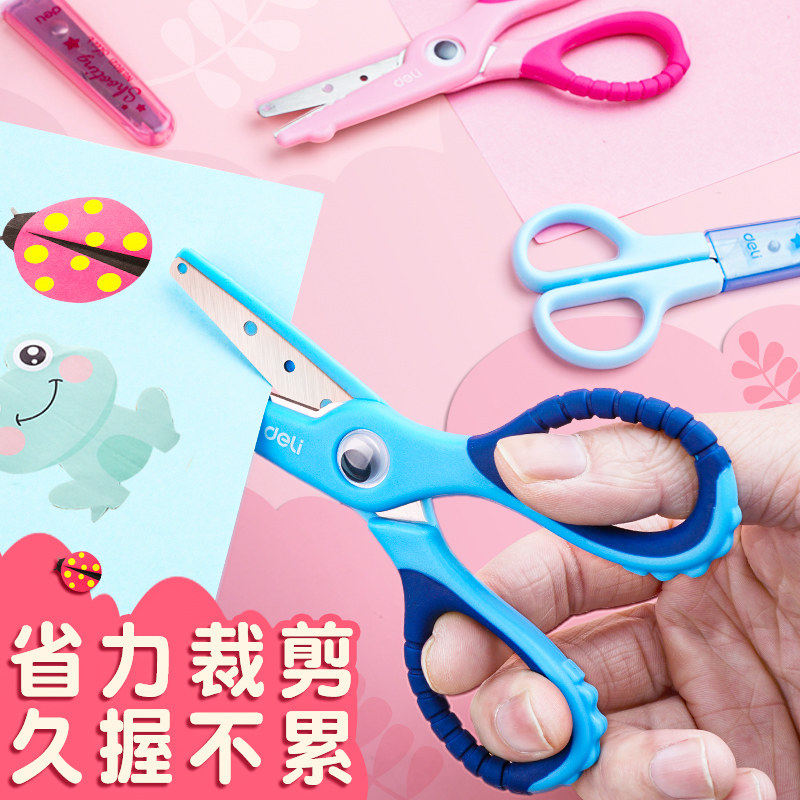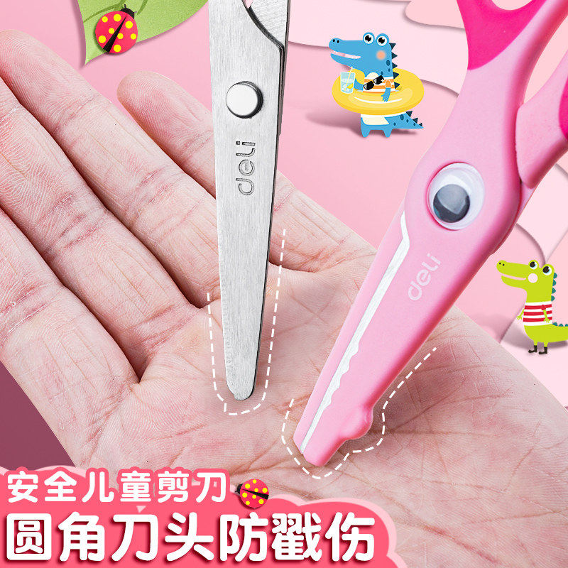 得力儿童手工剪幼儿园宝宝剪刀圆头安全不伤手包边小剪子省力高颜值可爱卡通小学生简单裁纸剪纸专用刀小型