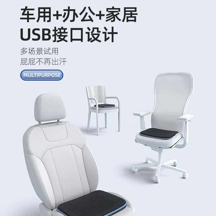 夏季带风扇坐垫通风办公室制冷座椅透气usb散热降温蜂窝凝胶冰垫