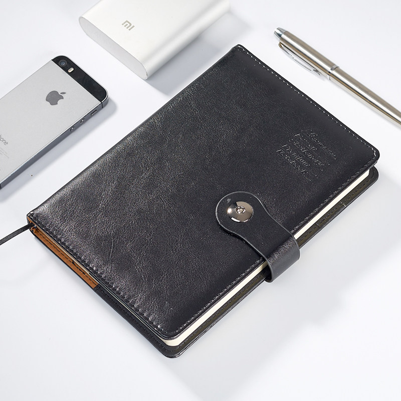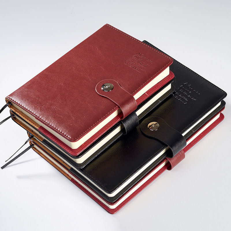 博文文具商务笔记本鸡眼扣厚本皮面记事本办公用品磁扣工作会议本