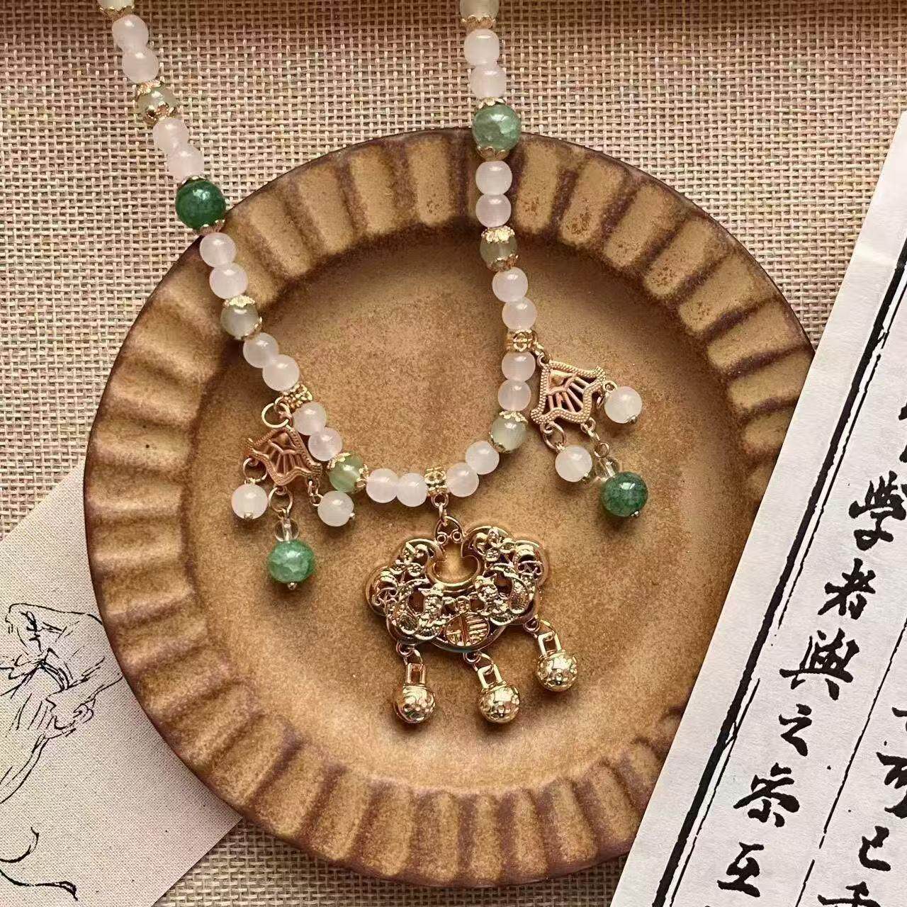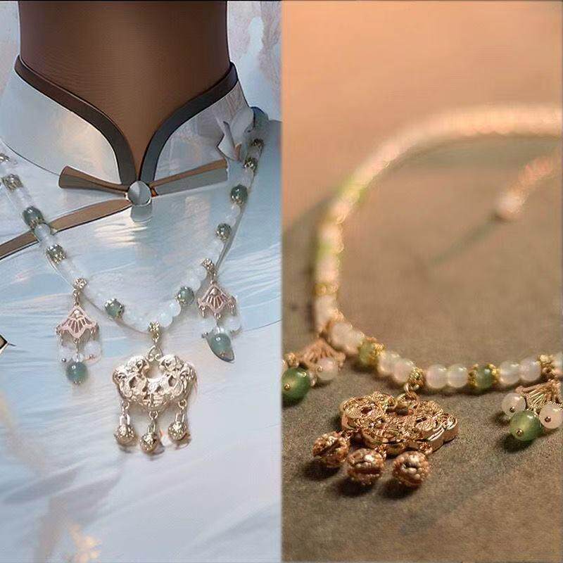 古风平安锁璎珞项链坦领柯子裙汉服配饰简约软璎珞珍珠吊坠女蝴蝶