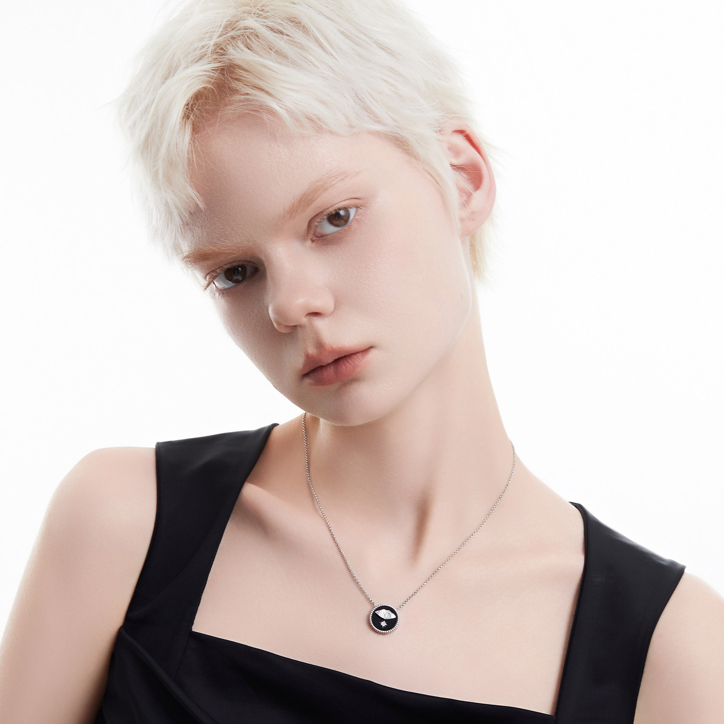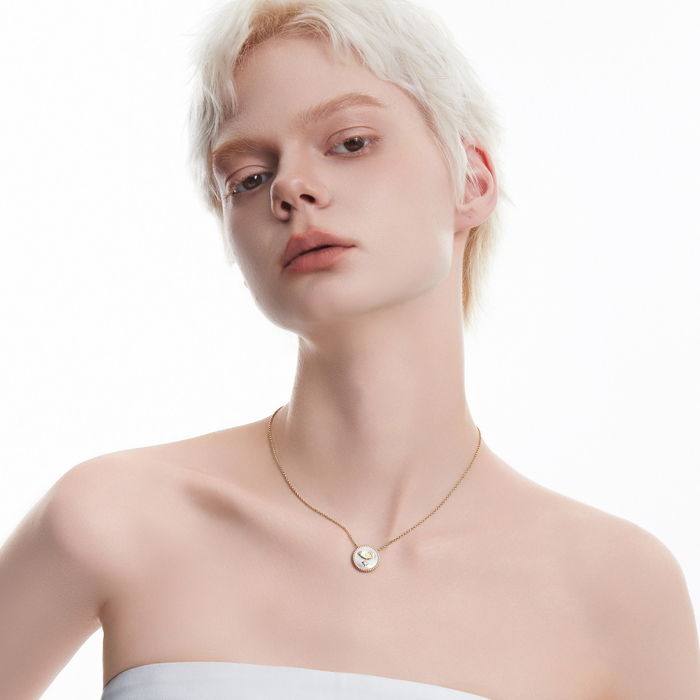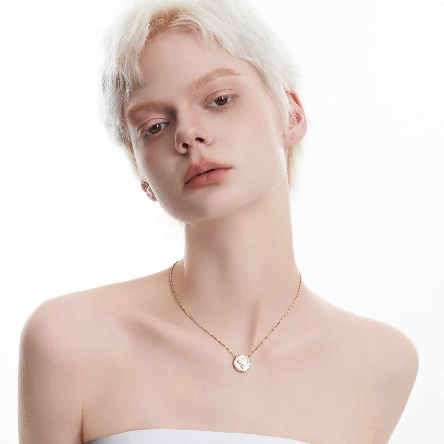 AmberLollipop天然白贝母项链女方形吊坠锁骨链小众颈链百搭配饰