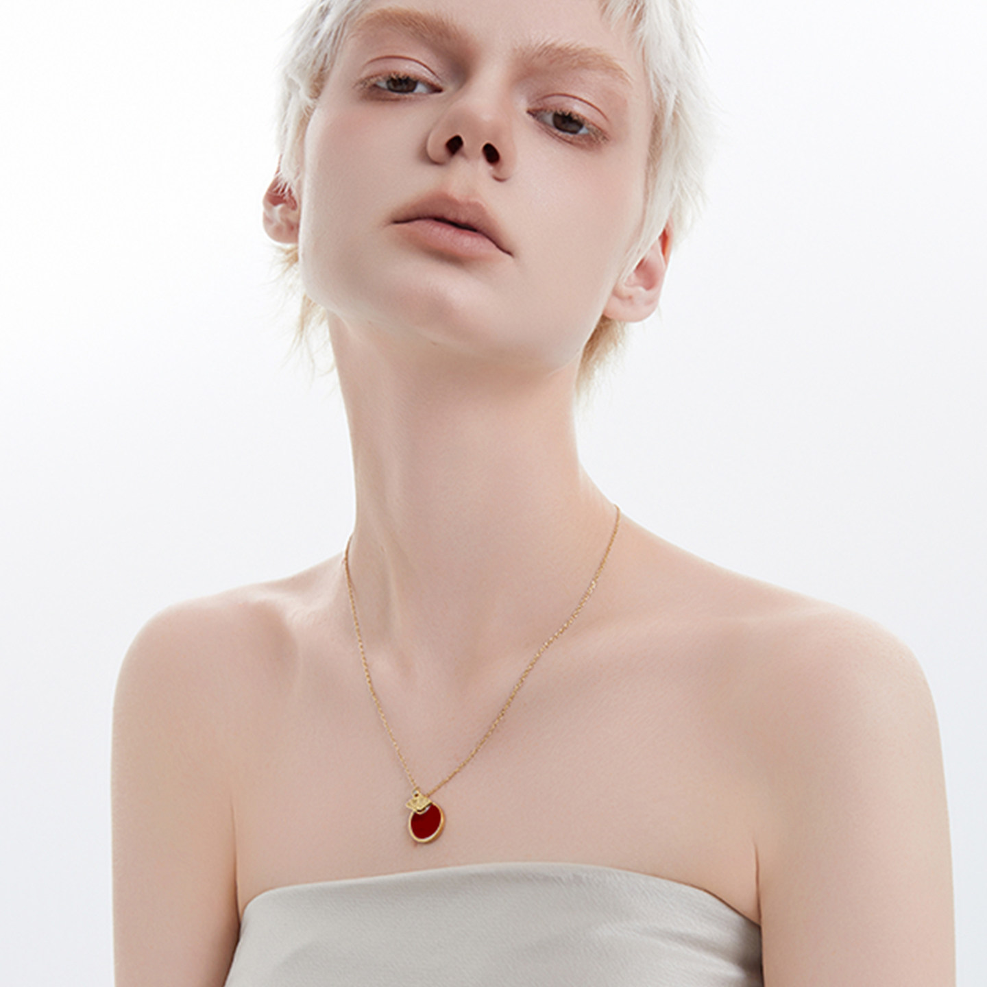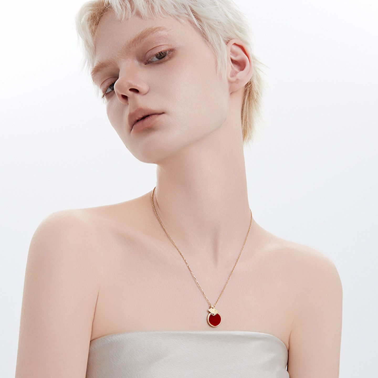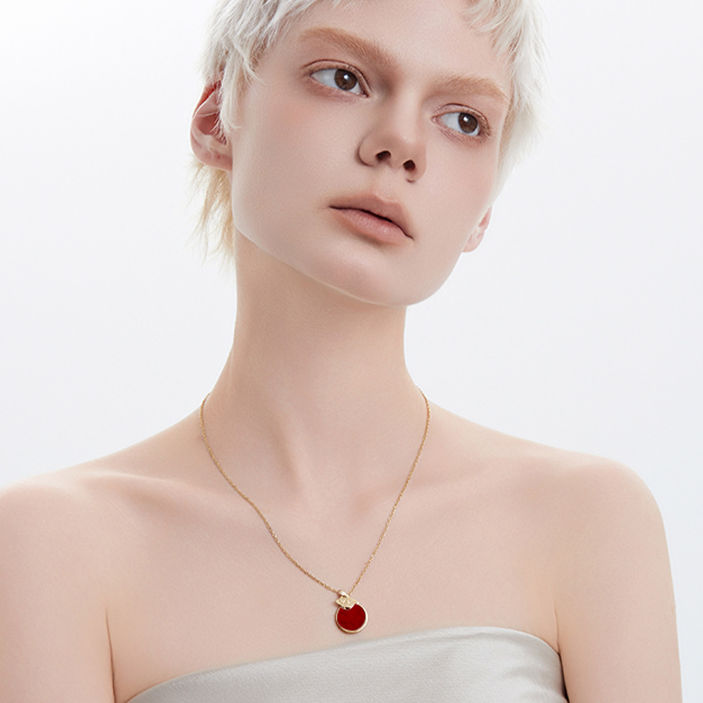 黛西法罗圆形红色简约项链女款蝴蝶系列K金气质精美经典百搭吊坠