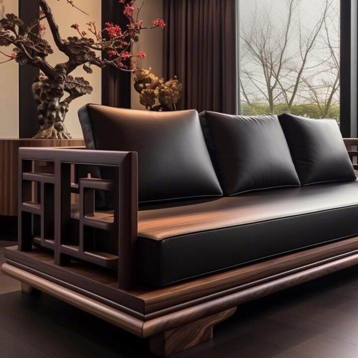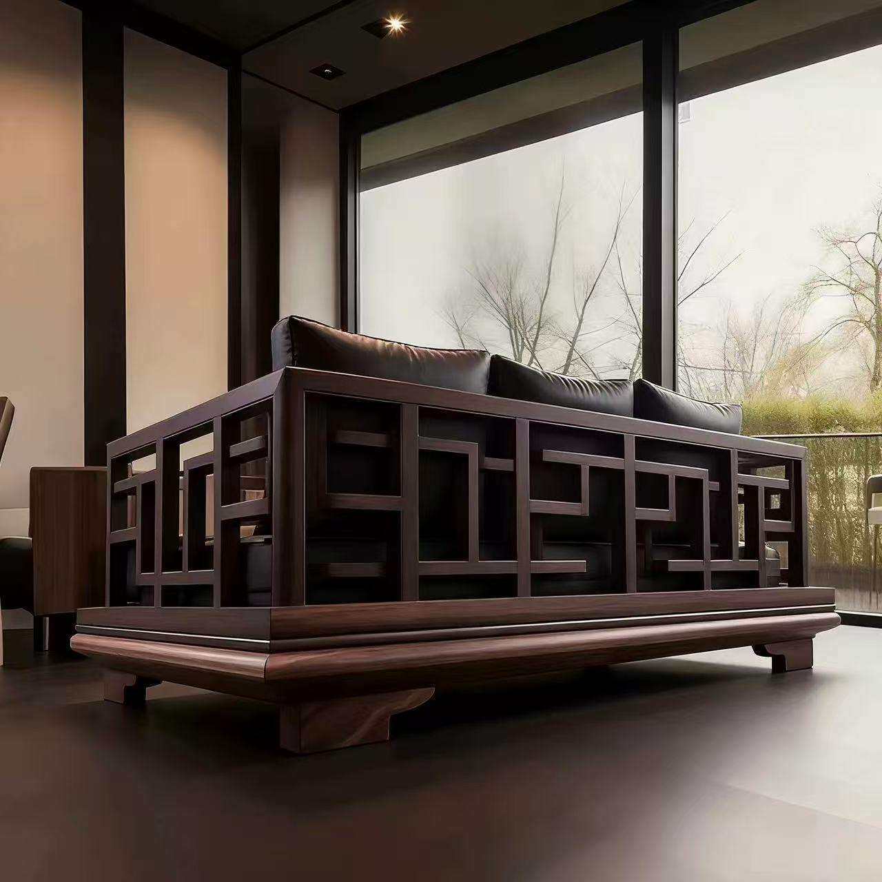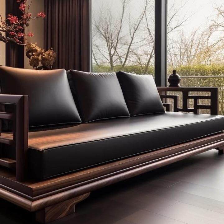 中古风黑胡桃木实木直排沙发2025新款别墅客厅现代罗汉床高端家具