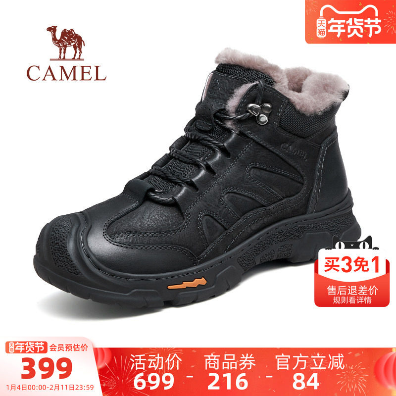 骆驼男鞋加绒高帮鞋冬季新款加厚雪地靴男棉鞋户外运动徒步登山鞋