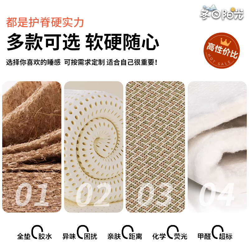 冬日阳光天然椰棕床垫棕垫1.8m1.5米硬棕榈床垫乳胶儿童榻榻米