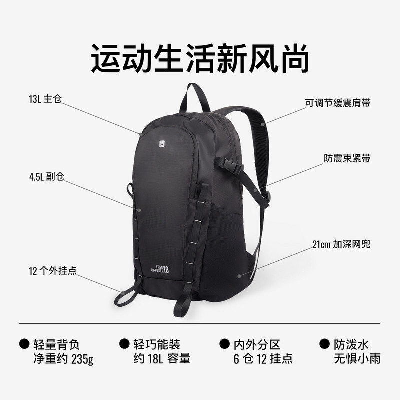 Keep自由胶囊可折叠双肩包户外登山爬山女旅游轻量便携防水徒步包