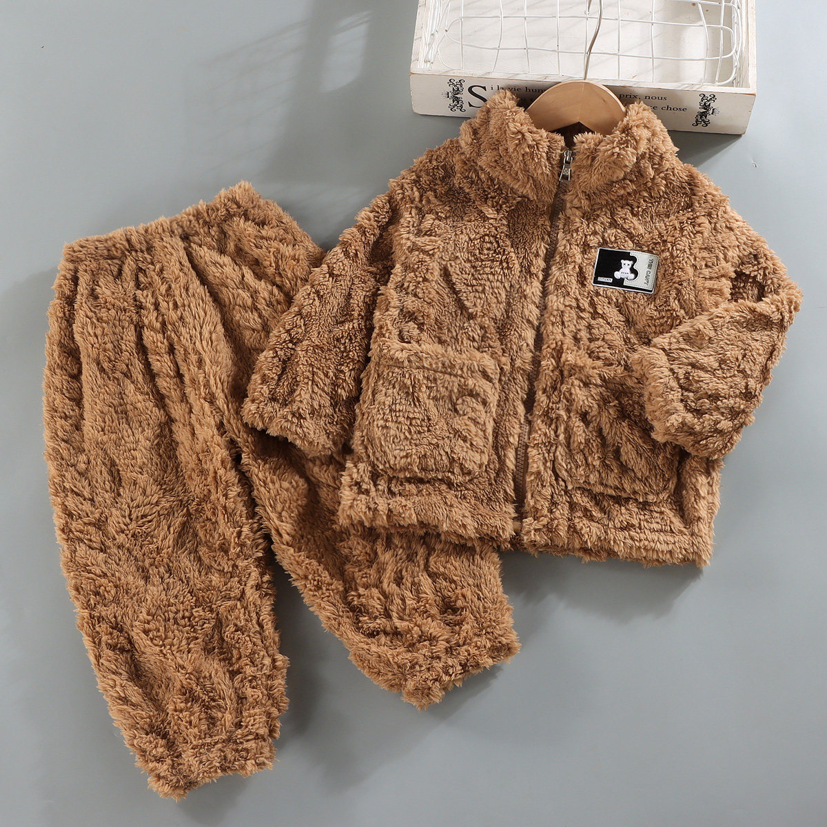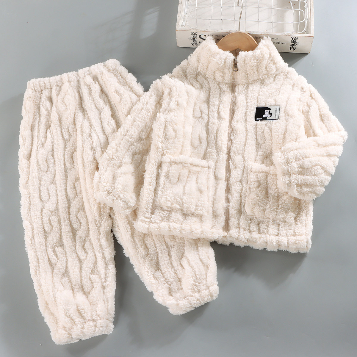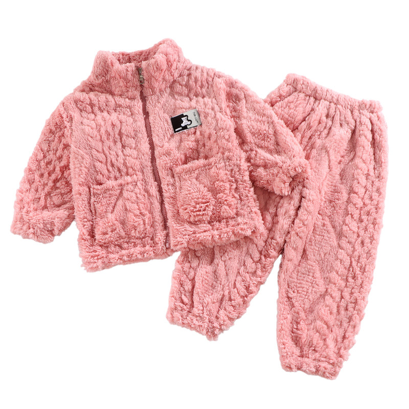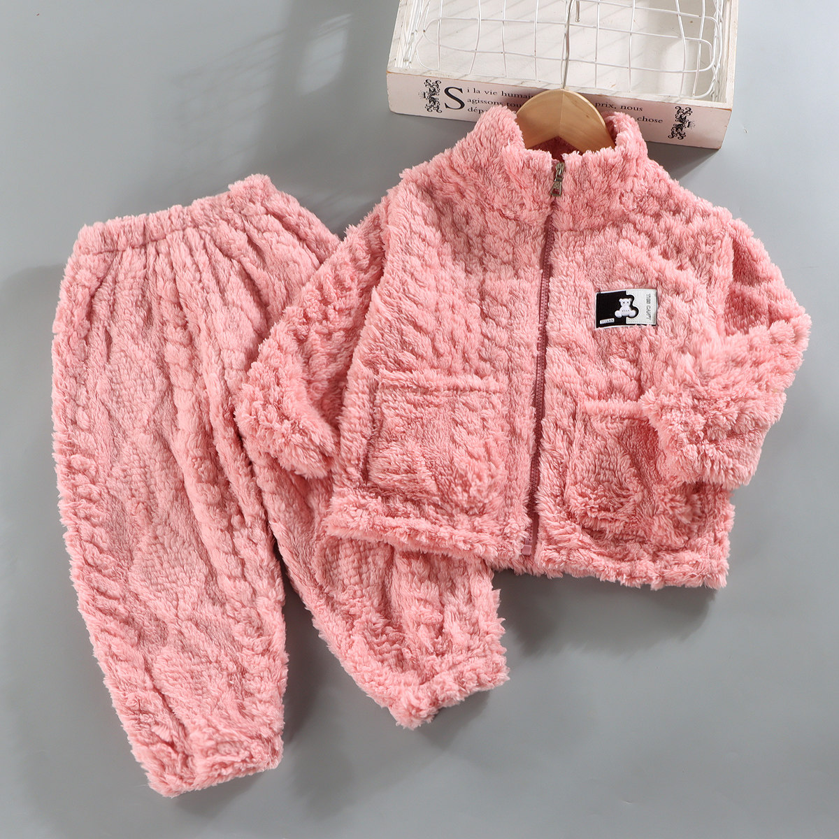 小黑托昵男女童连帽睡衣套装半边绒儿童家居服冬款加绒加厚空调服