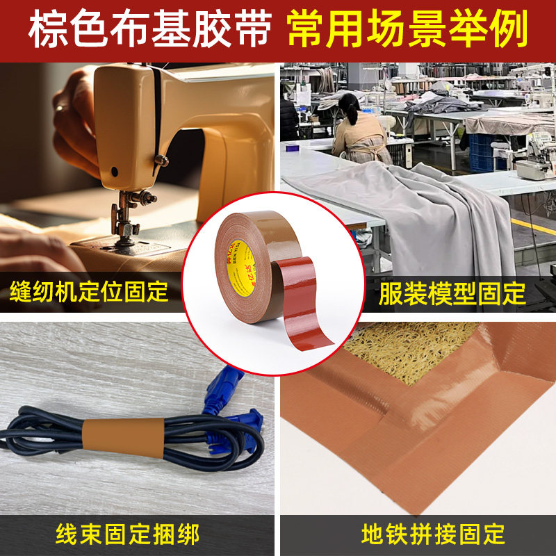 缝纫机定位红胶牛皮胶带高粘度强力固定服装模板打版专用单面棕色布基胶带无缝拼接地毯胶布防水无痕
