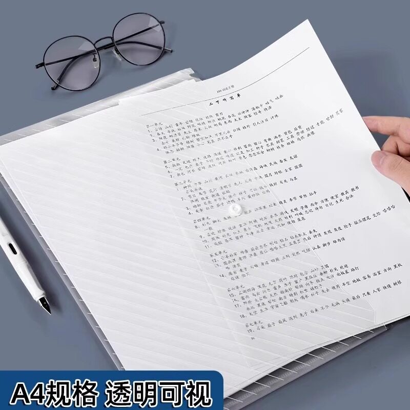 晨光A4文件袋透明塑料加厚大容量按扣试卷收纳带标签纽扣资料袋文件夹初中生专用公文包文具办公用品防水开学