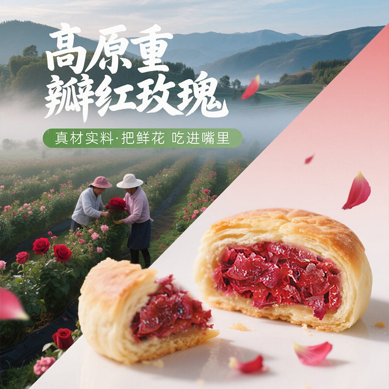 玫瑰鲜花饼云南特产糕点心月饼礼盒早餐面包整箱小吃零食休闲食品