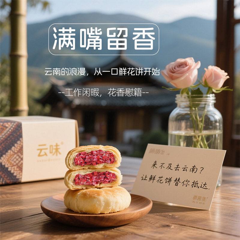云南特产玫瑰鲜花饼传统糕点中秋月饼休闲零食小吃早餐原味点心礼
