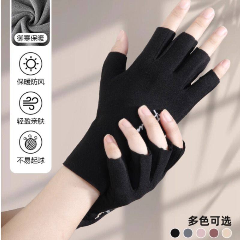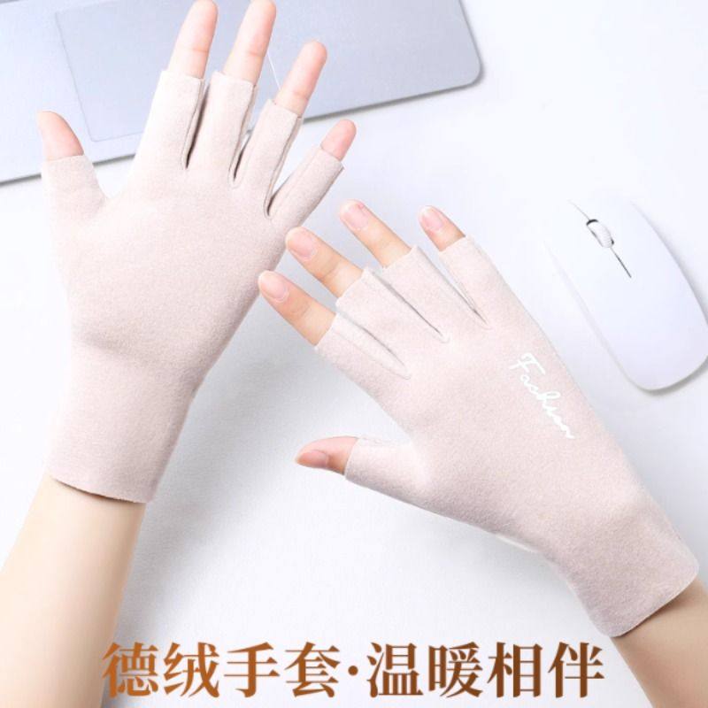 半指手套学生写字专用德绒发热防寒保暖骑车触屏打字露指暖手轻薄