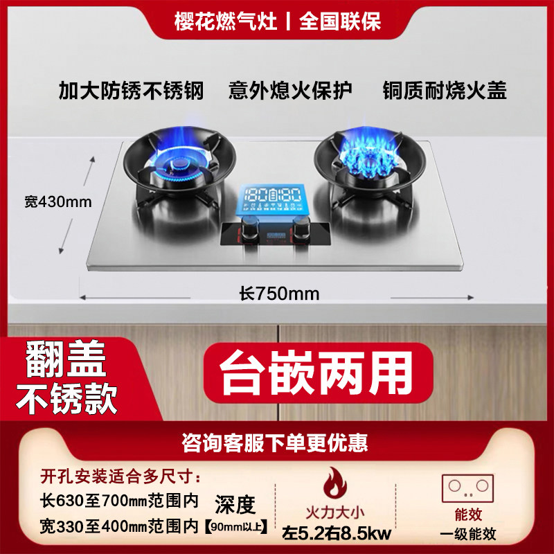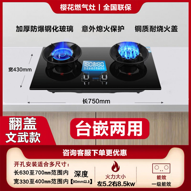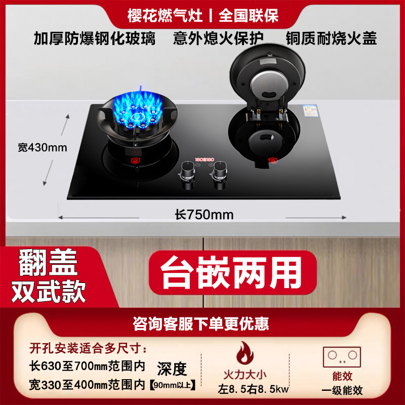 樱花翻盖燃气灶双灶家用天然气厨房台式液化气嵌入式大火力煤气灶
