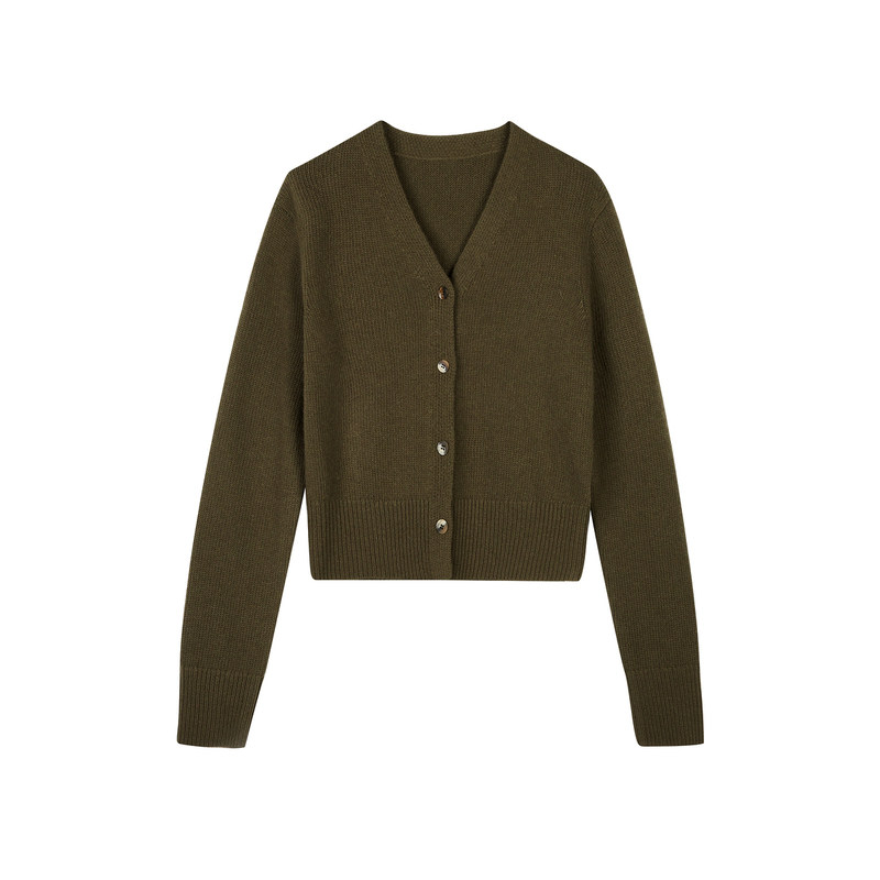 新款羊毛开衫外套女针织打底衫V领2025年春季羊绒外搭短款毛衣女
