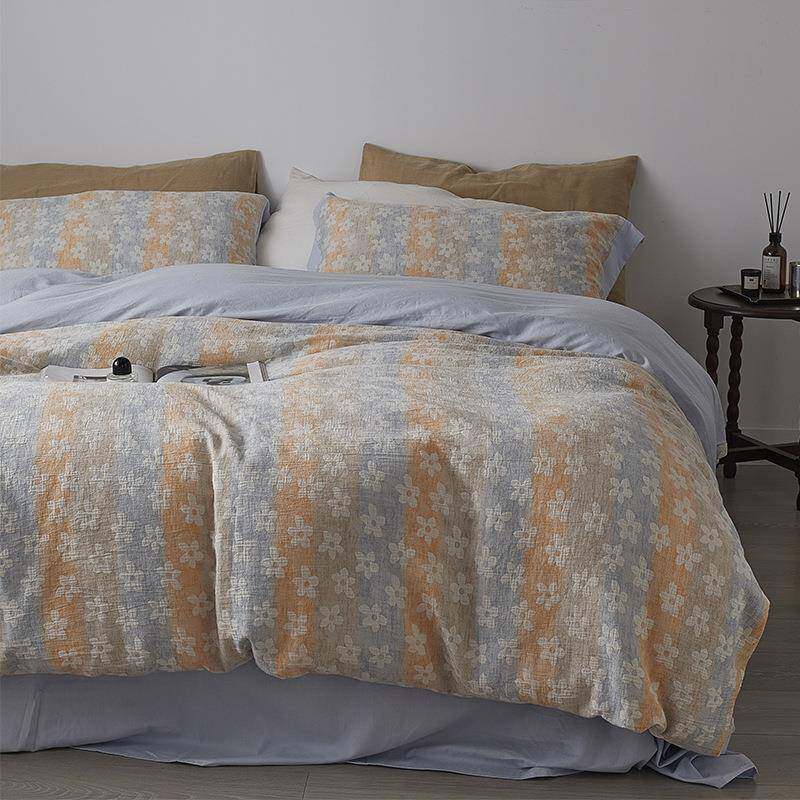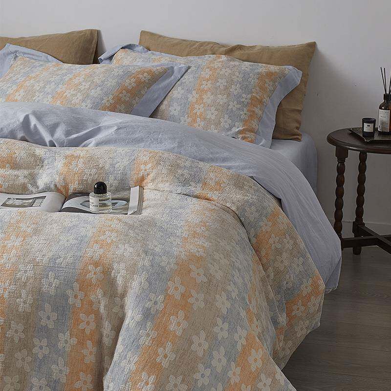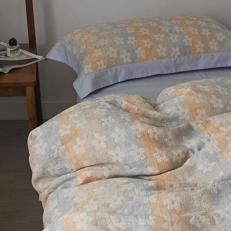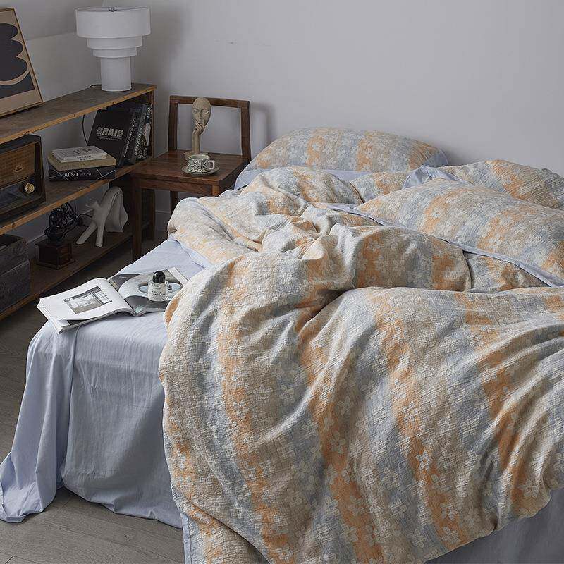 慵懒风空气层全棉提花肌理四件套 水洗色织纯棉床单被套