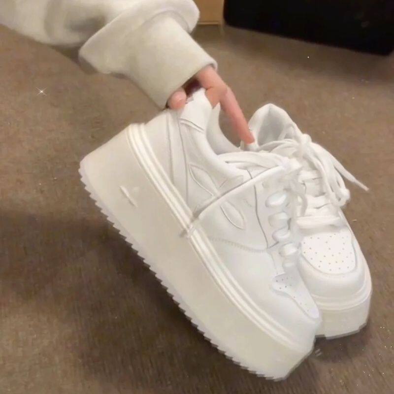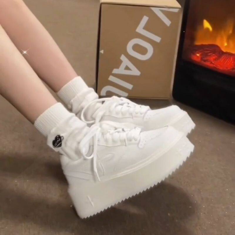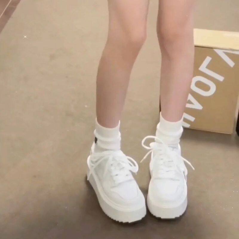 品牌断码赵露思同款厚底小白鞋女2026秋新款美拉德松糕底增高系带