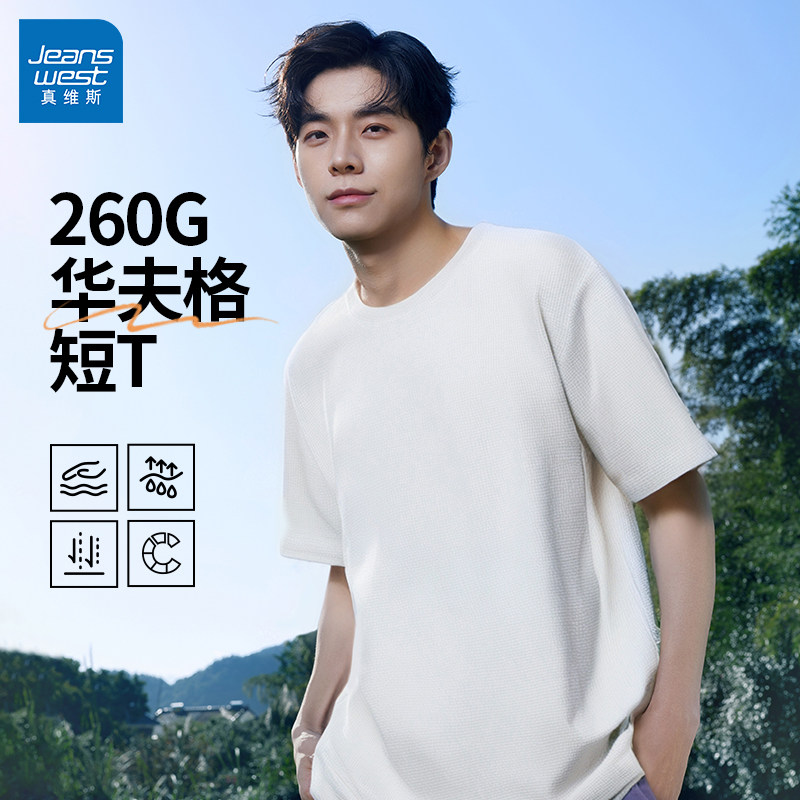 NN真维斯短袖t恤男夏季重磅华夫格体恤青少年透气简约宽松上衣服