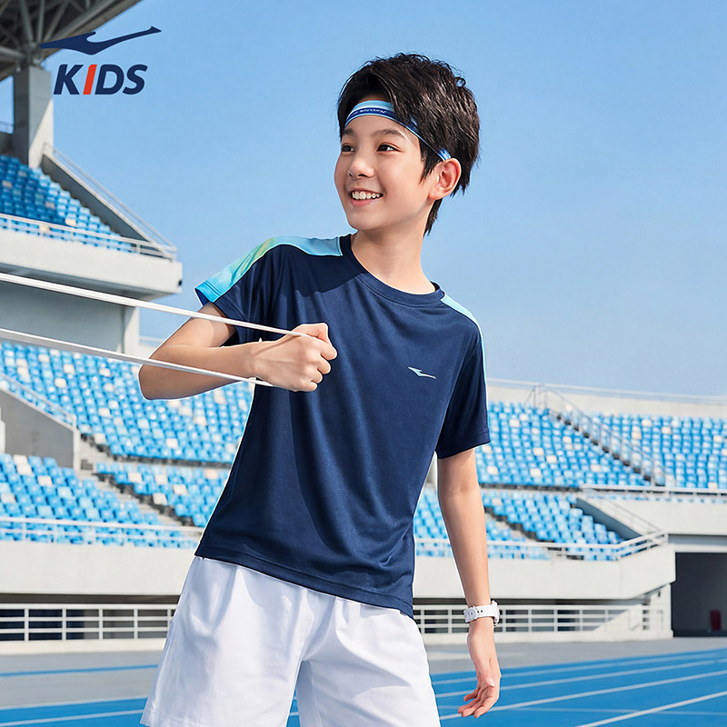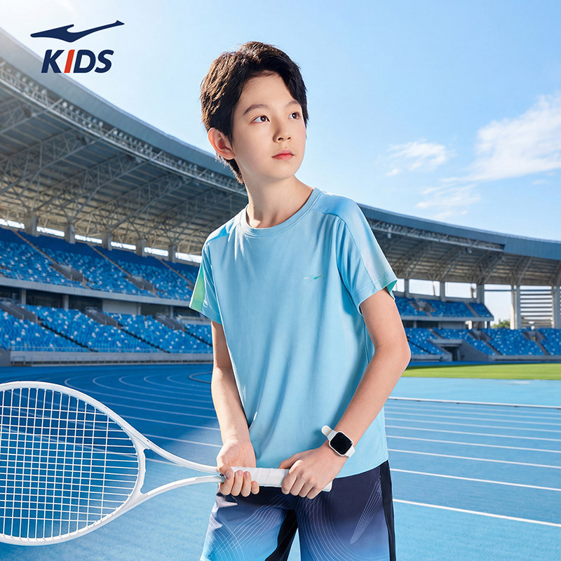 鸿星尔克童装男童短袖T恤夏季新款夏装冰感透气上衣青少年速干衣