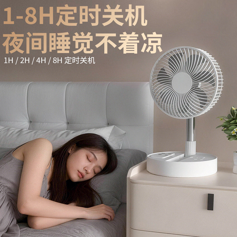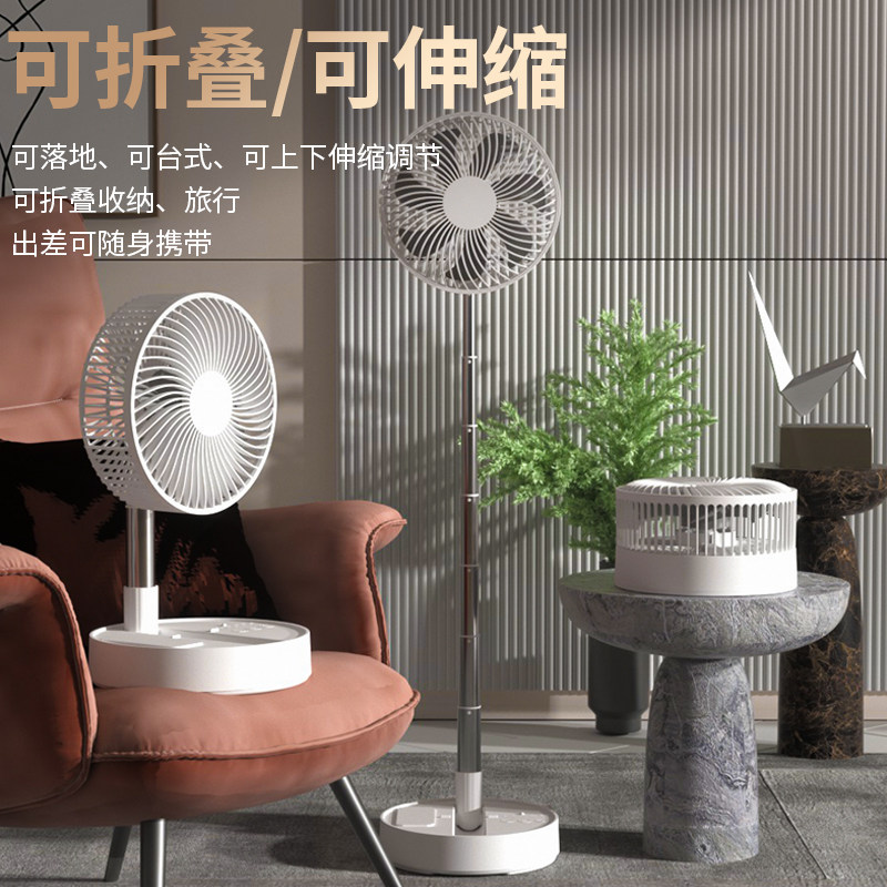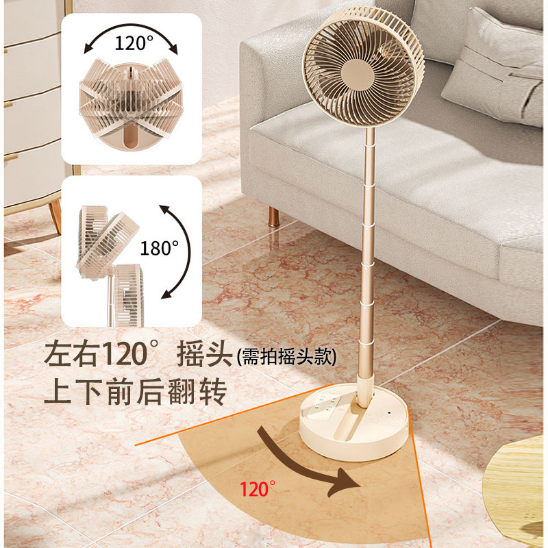 折叠风扇立式伸缩可充电家用落地扇小型便携收纳办公室桌面静音摇头台式扇usb无线锂电池长续航电扇充插两用
