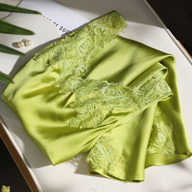 美标春夏新款吊带真丝睡裙女100%桑蚕丝绸睡衣蕾丝性感凉感家居服