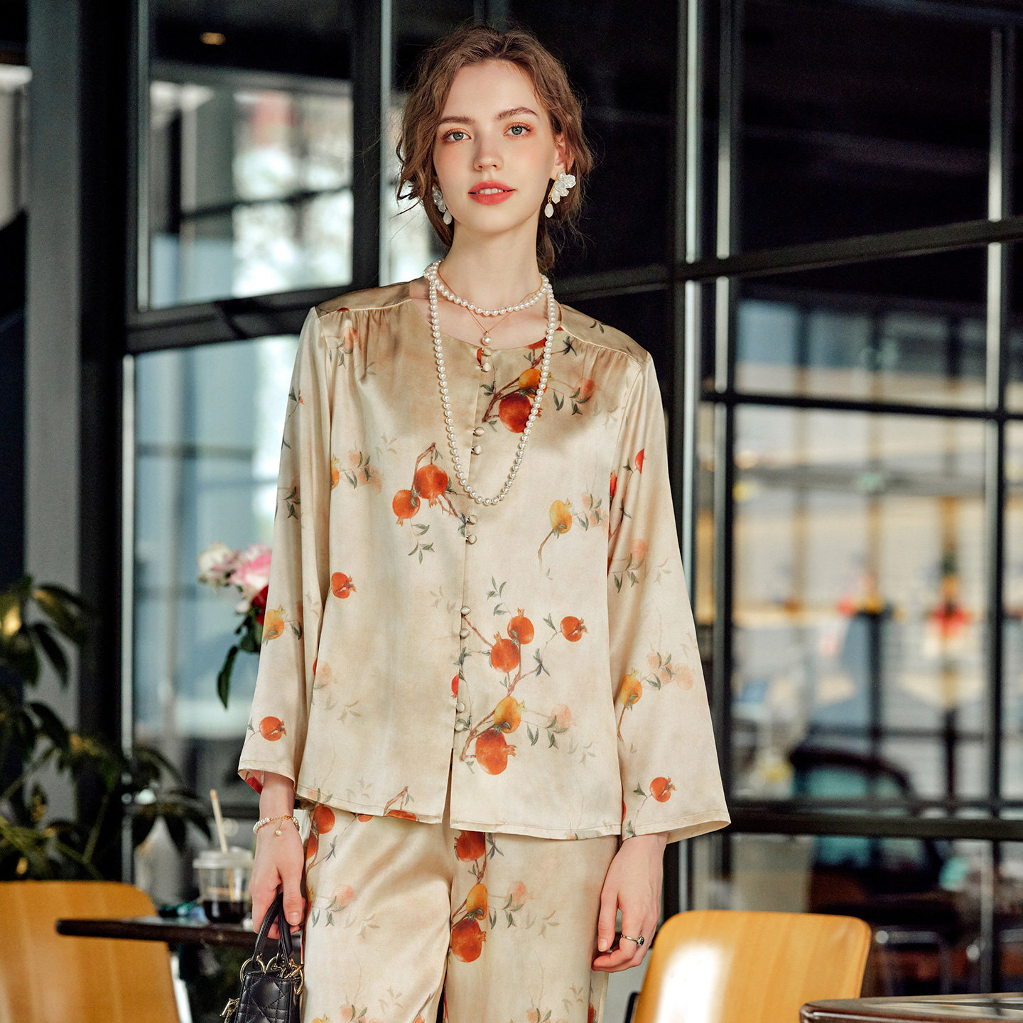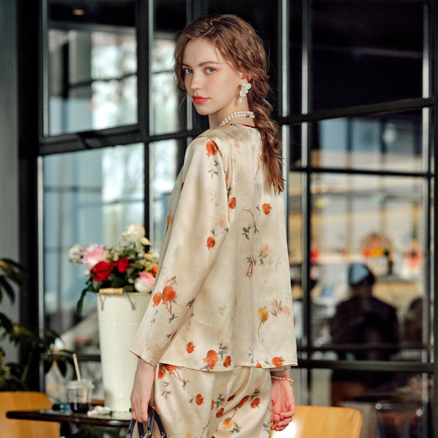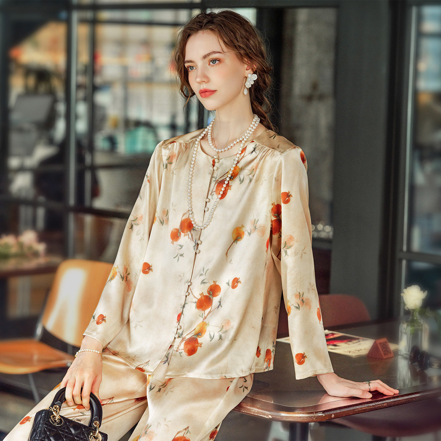 美标春秋长袖19姆米重磅真丝睡衣套装女桑蚕丝中国风丝绸家居服冬