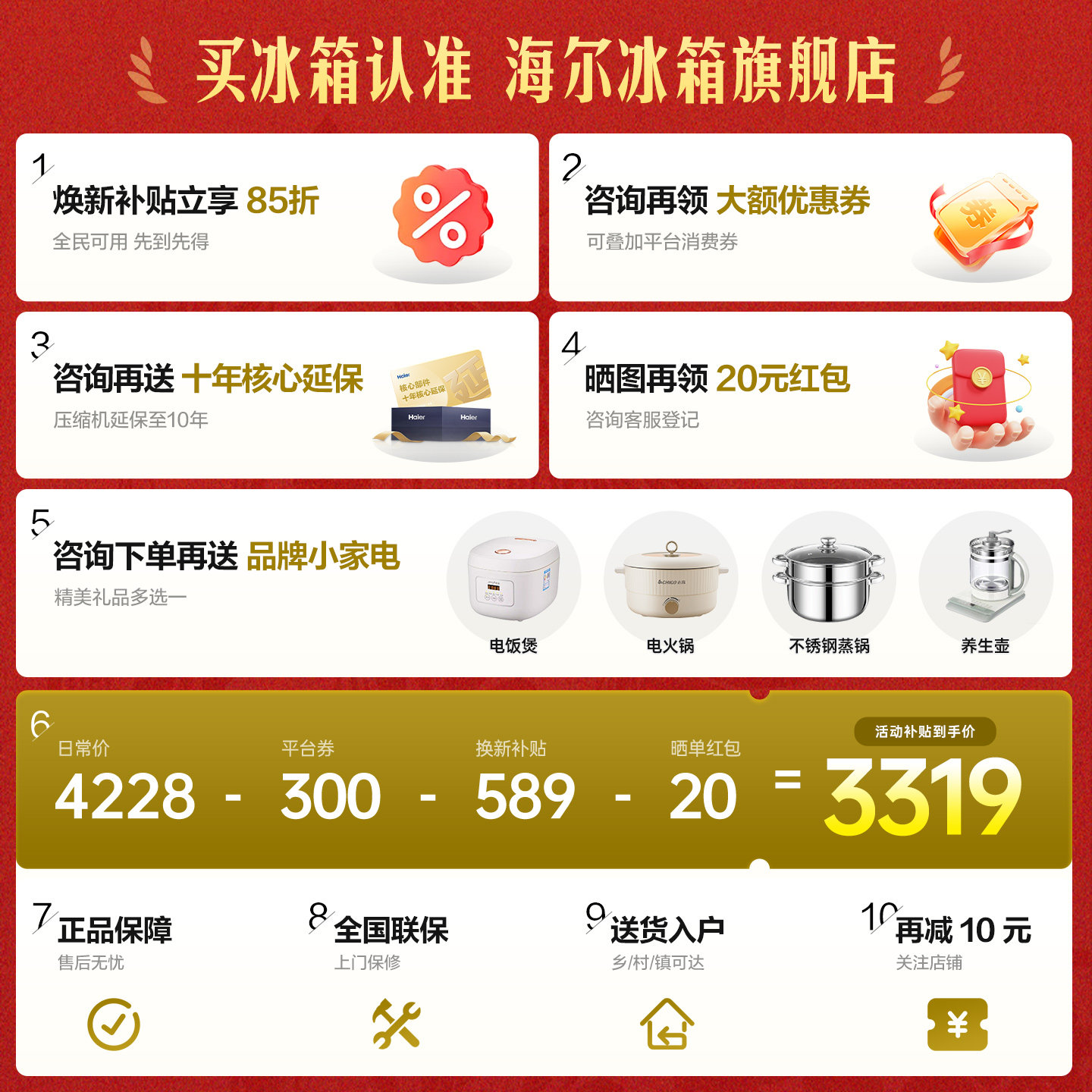 海尔冰箱以旧换新补贴476L十字双开门大容量家用一级能效无霜官方
