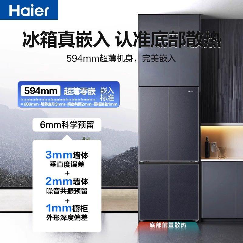 【焕新补贴】海尔冰箱501L十字四门超薄零嵌一级能效家用官方正品