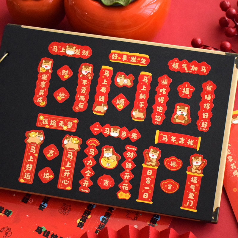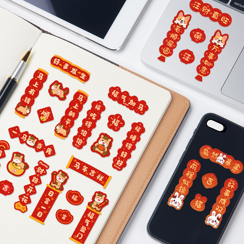 2026马年新年迷你小尺寸对联贴纸春节手机壳装饰祝福文字贴画保温杯子图标中国风手账笔记本创意开关门幅春联