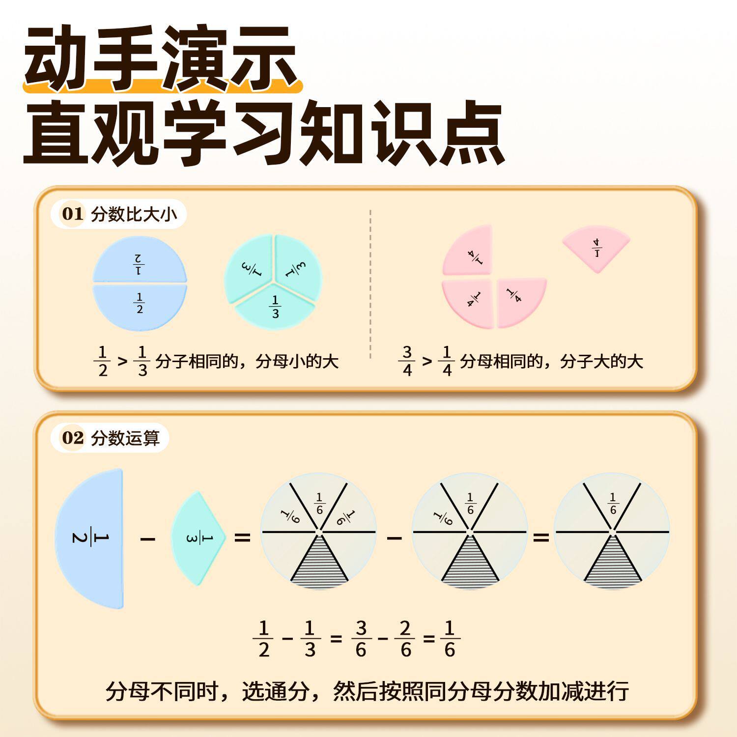 爱好分数学习演示器三五年级分数加减法小学生初步认识分数学习盘