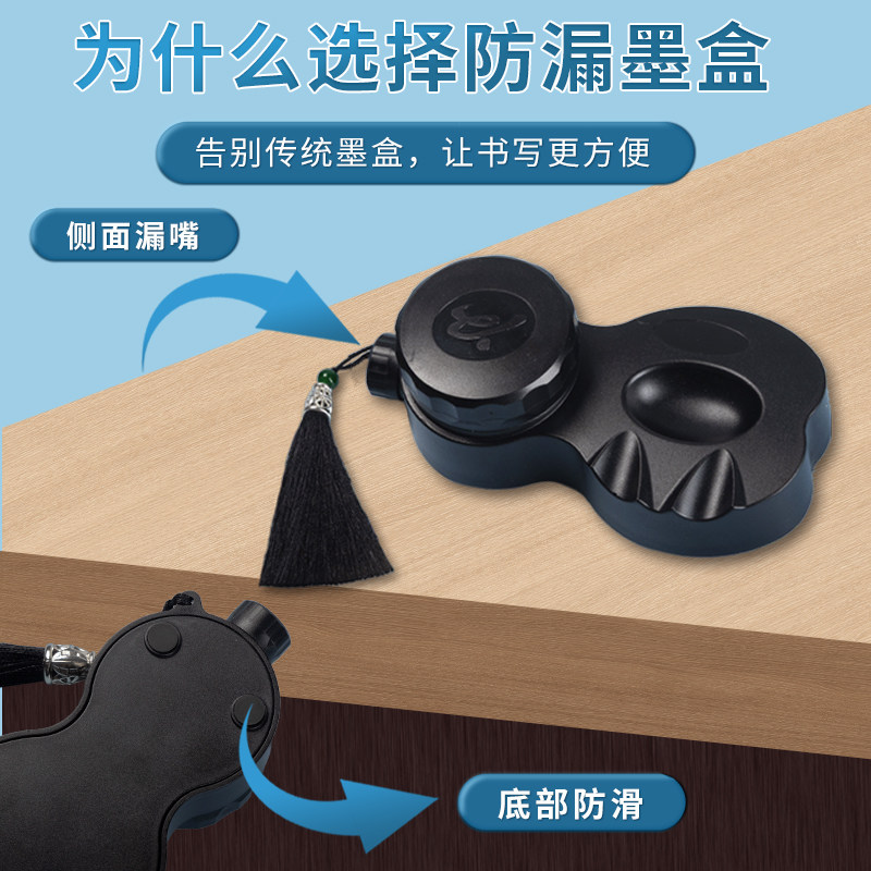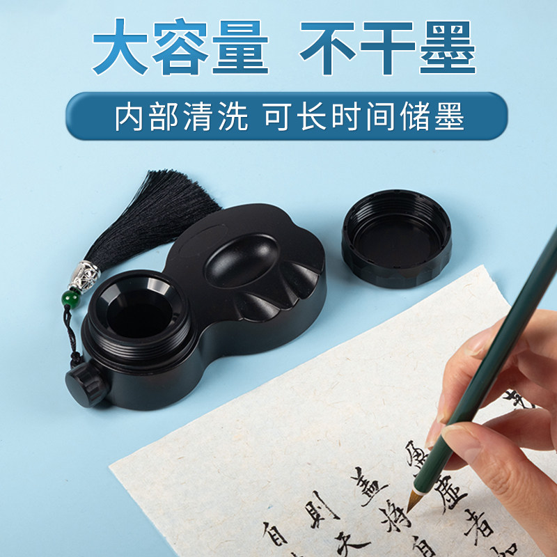 便携式防漏墨盒带盖小学生书法专用不干墨毛笔墨汁砚台方便墨水盒墨汁容器塑料墨池免洗笔搁墨碟墨汁碟带笔舔
