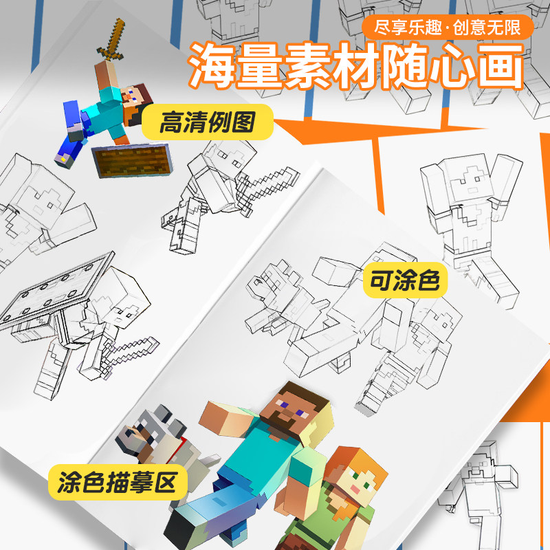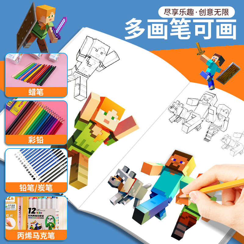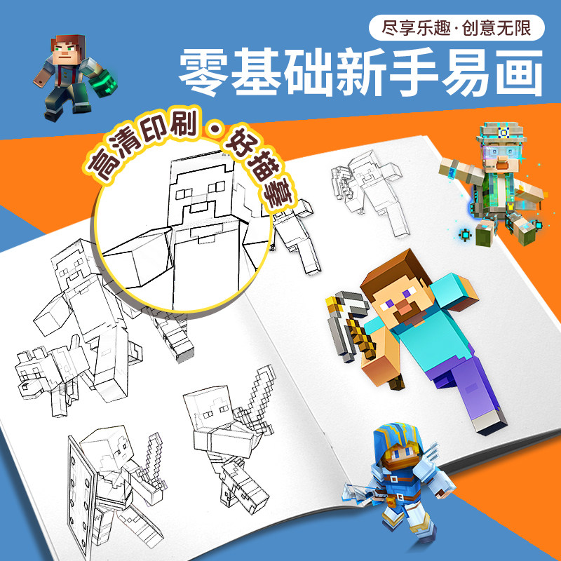 MC我的世界像素描摹画画本儿童描绘画临摹本立体画线稿手绘控笔练习涂鸦画本画册马赛克涂色益智手绘素描本