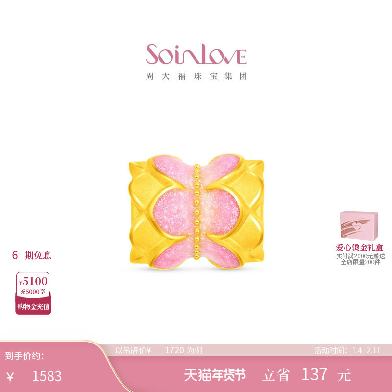 周大福SOINLOVE 蜜粉金十里红妆莲莲好运黄金转运珠 VR1891