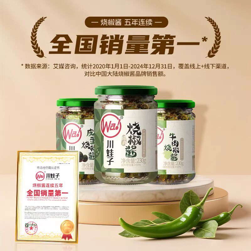 川娃子烧椒酱擂椒皮蛋辣椒酱牛肉青椒剁椒酱拌面拌饭酱下饭菜瓶装
