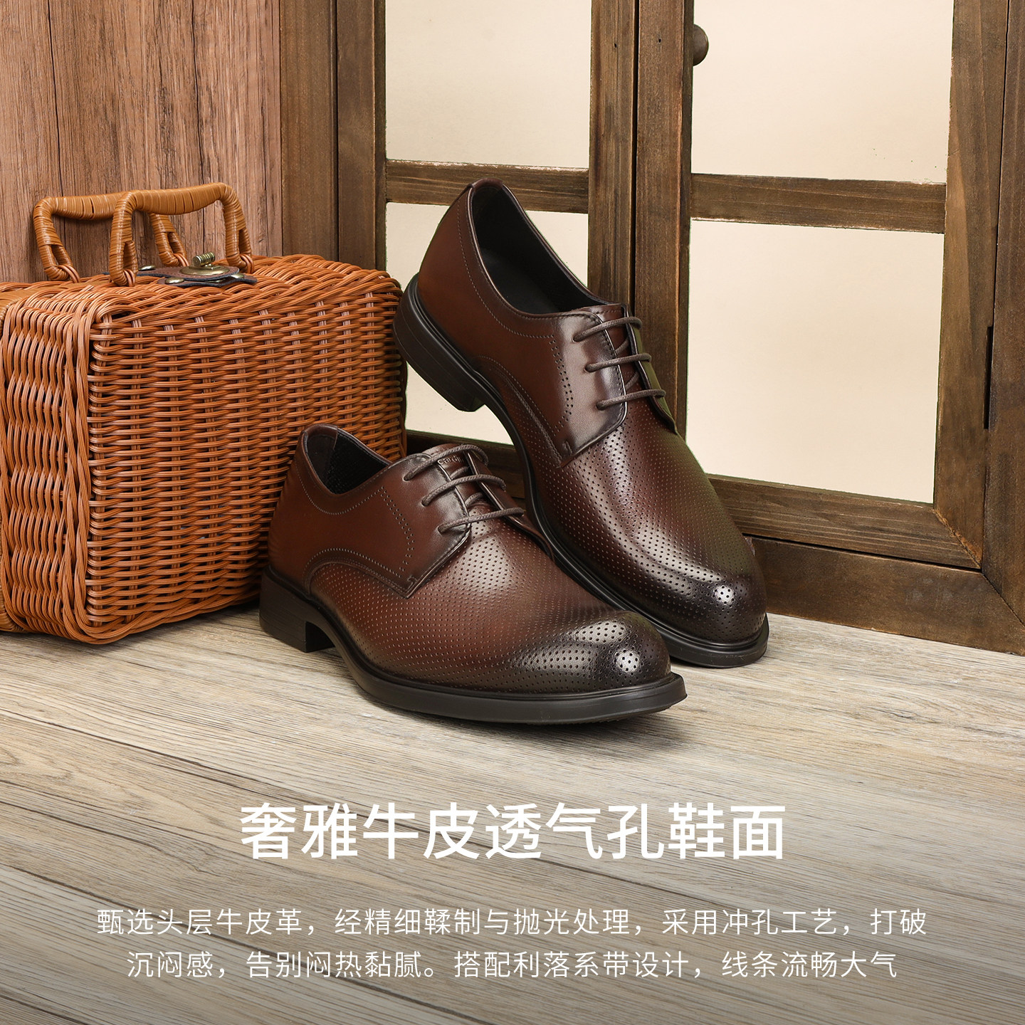 皮尔卡丹男鞋商务正装皮鞋26春夏透气冲孔复古擦色牛津鞋德比鞋