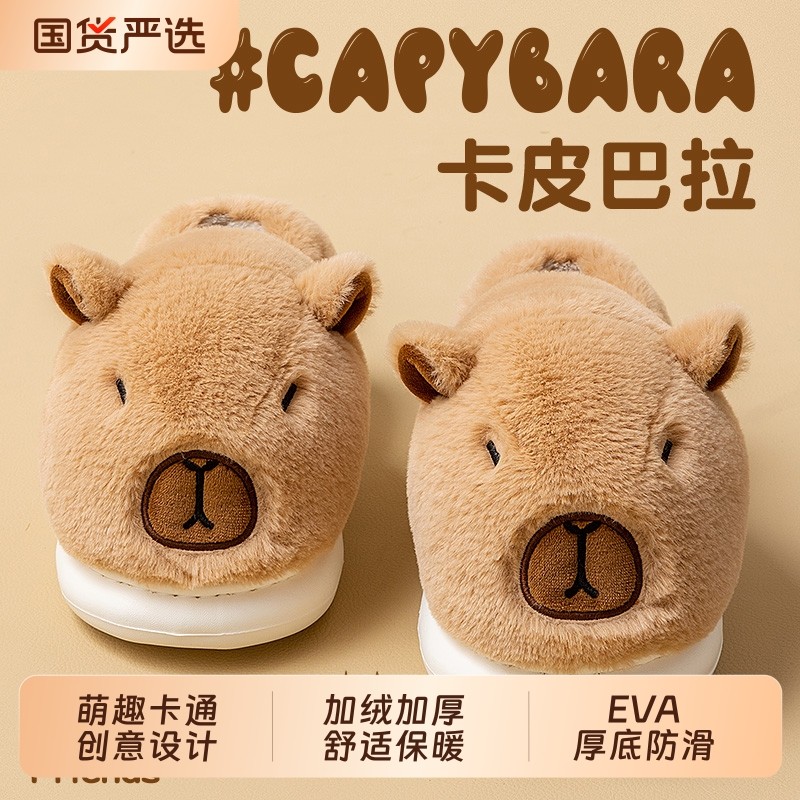 卡皮巴拉棉拖鞋女士2025新款冬季加绒保暖家居室内情侣外穿棉鞋男