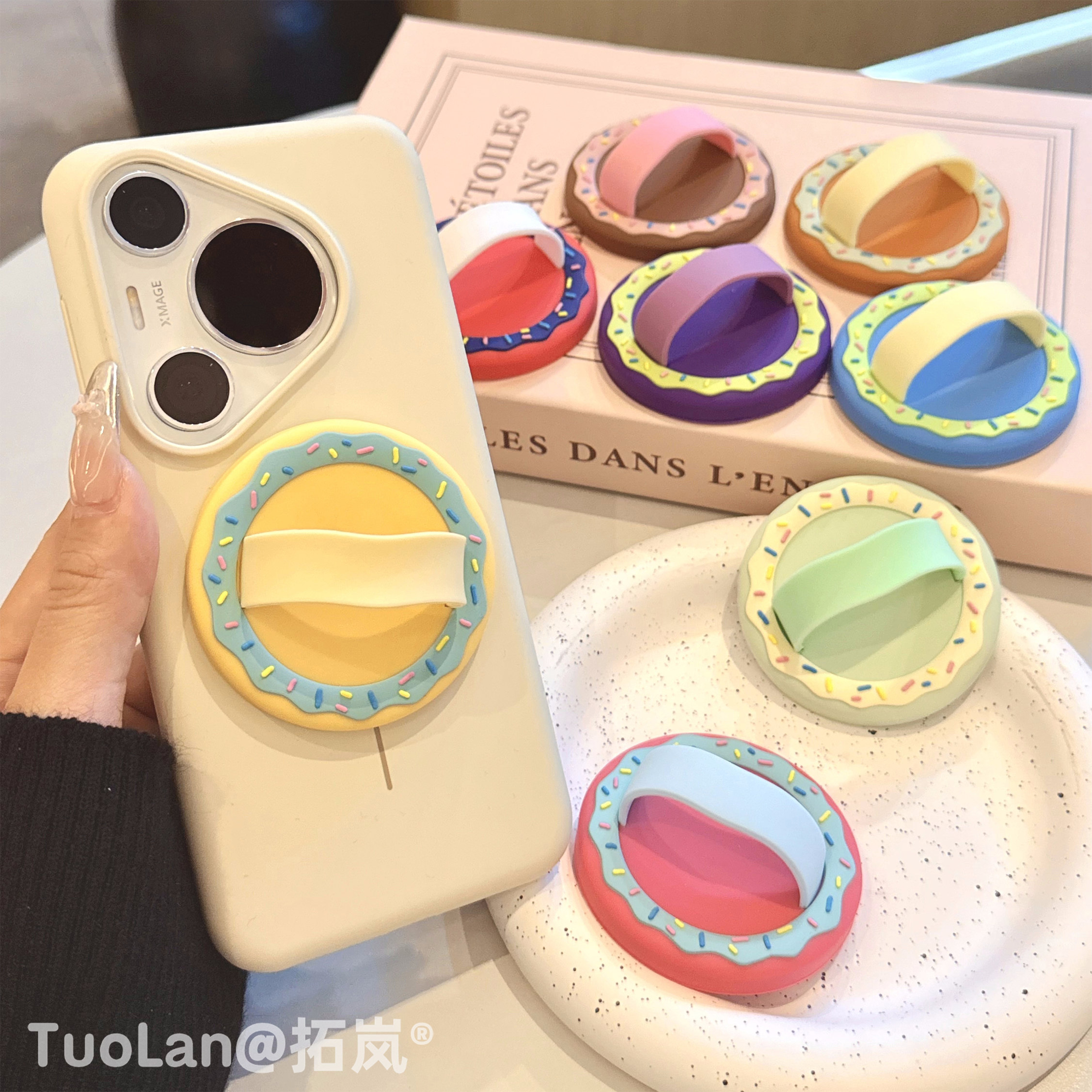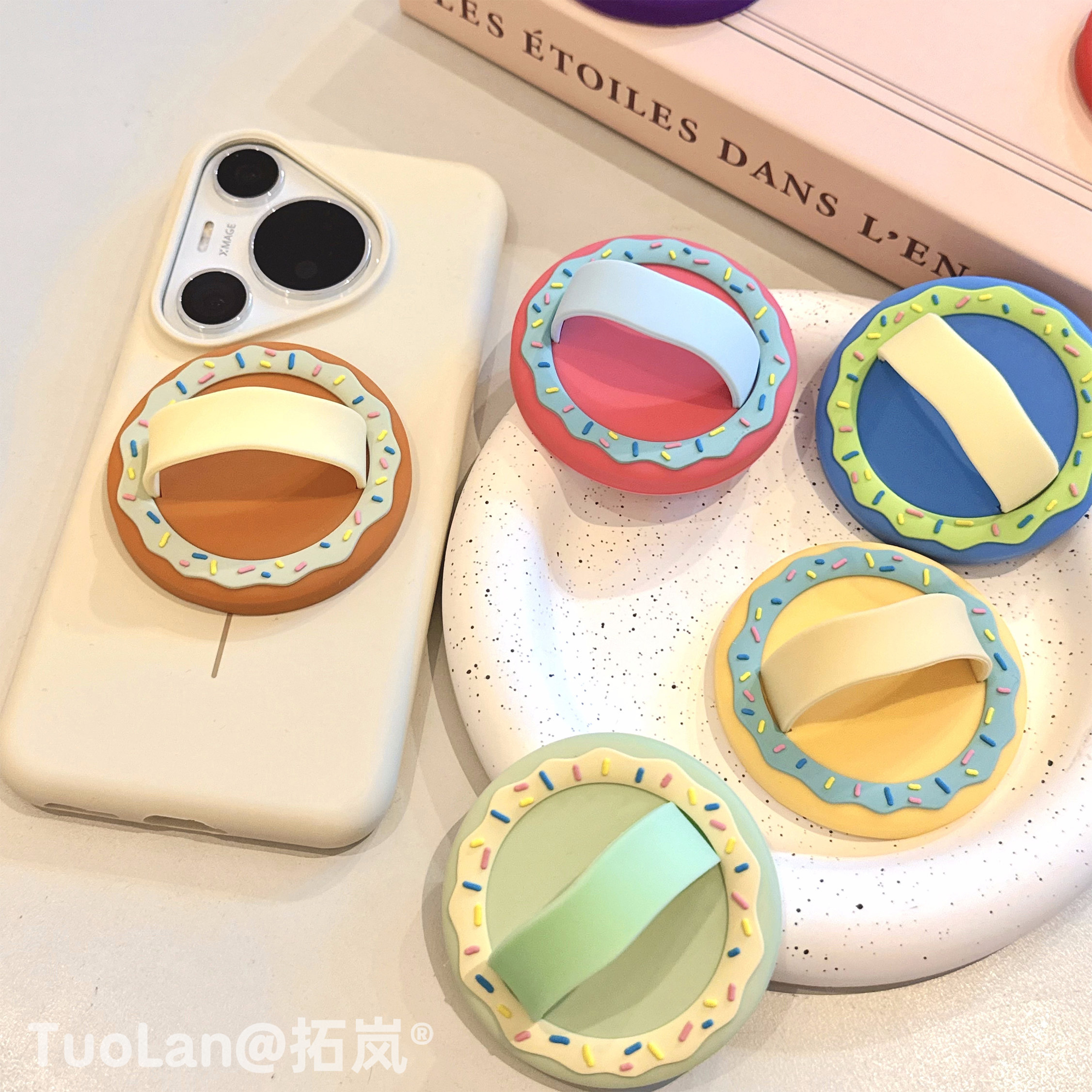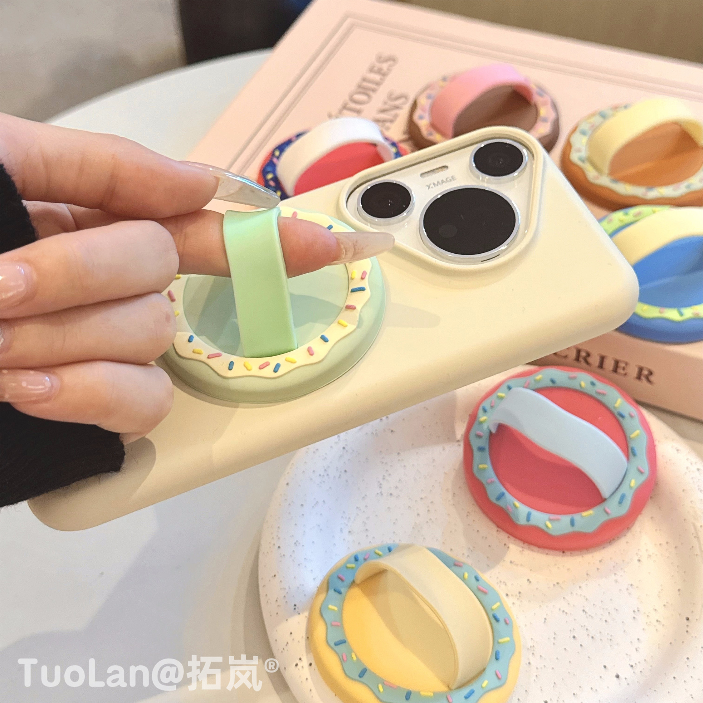拓岚 韩国超火ins夏日多巴胺彩色撞色甜甜圈Magsafe磁吸指环扣新款立体硅胶套适用华为小米苹果手机壳便携女