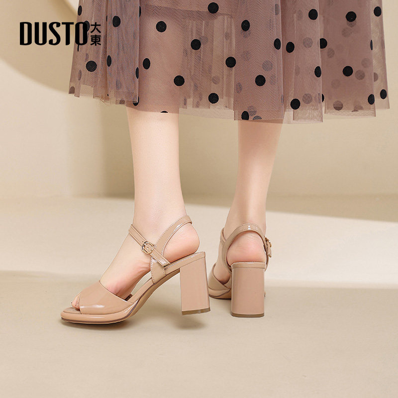 大东高跟凉鞋女款2025新款夏季绝美粗跟一字带小个子配裙子高跟鞋