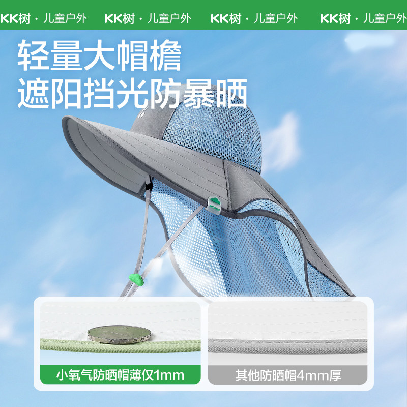 KK树儿童防晒帽防紫外线男童女孩大帽檐遮阳宝宝太阳帽2025年新款