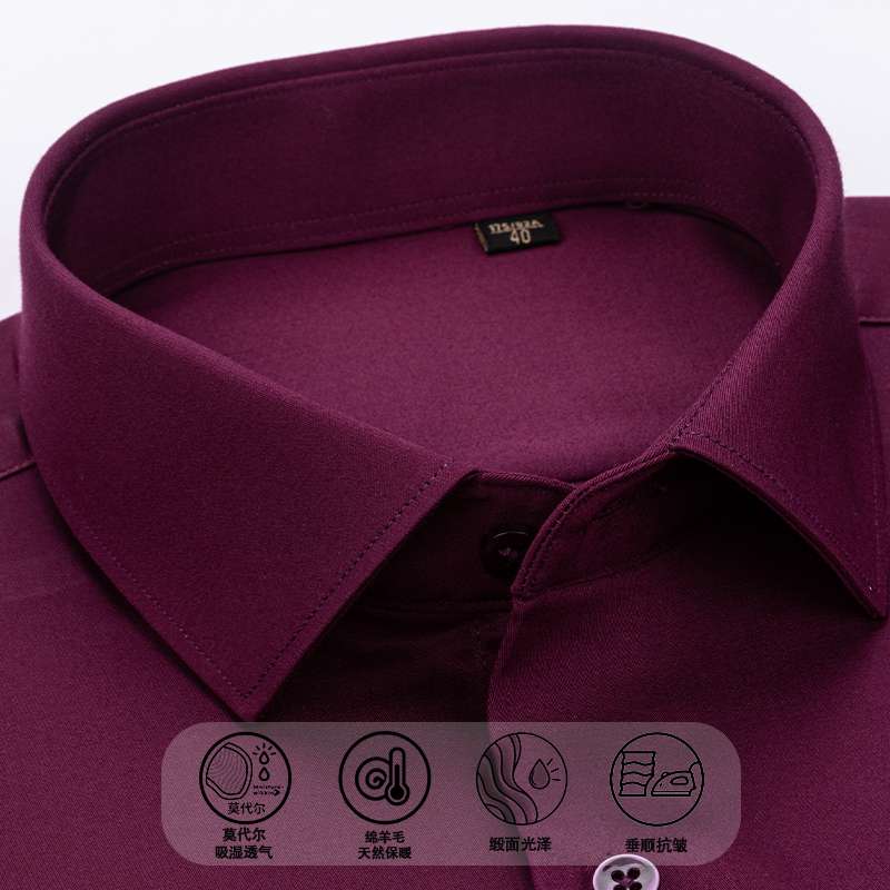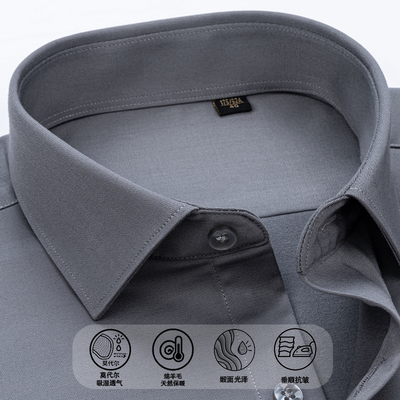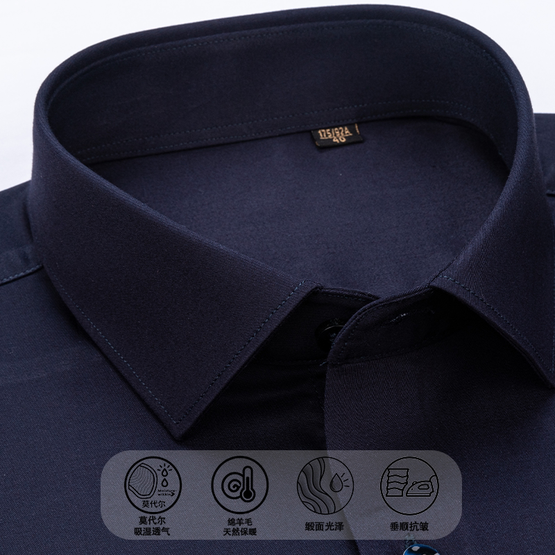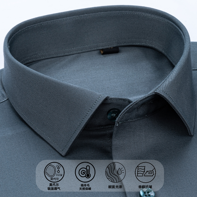 【含莫代尔+绵羊毛】新款缎面抗皱长袖衬衫秋冬季中年爸爸装男士