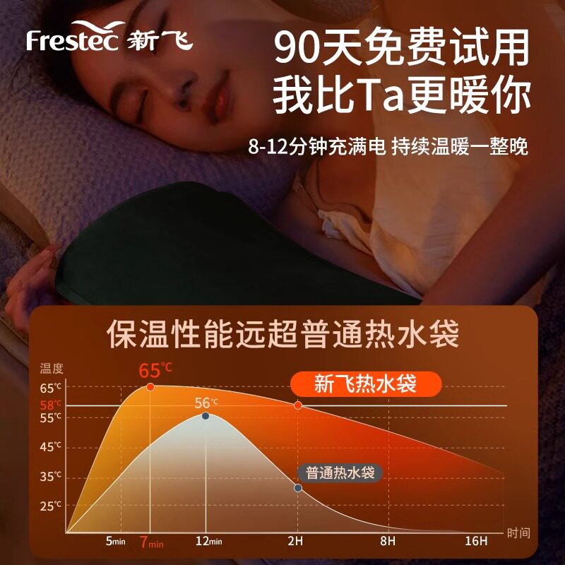 新飞电热水袋充电式保暖袋暖水袋暖手宝热宝暖宝宝防爆颈椎热敷被窝取暖神器过冬必备暖脚冬天可拆洗双层