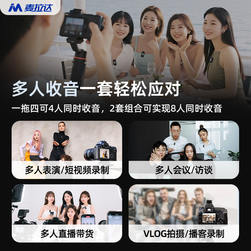 麦拉达X5一拖四无线领夹式麦克风手机多人直播收音麦相机外接录音