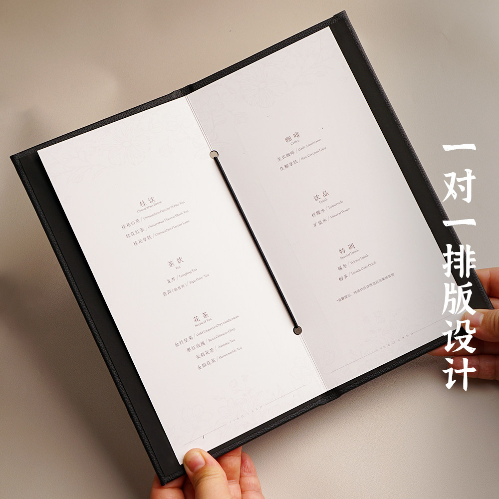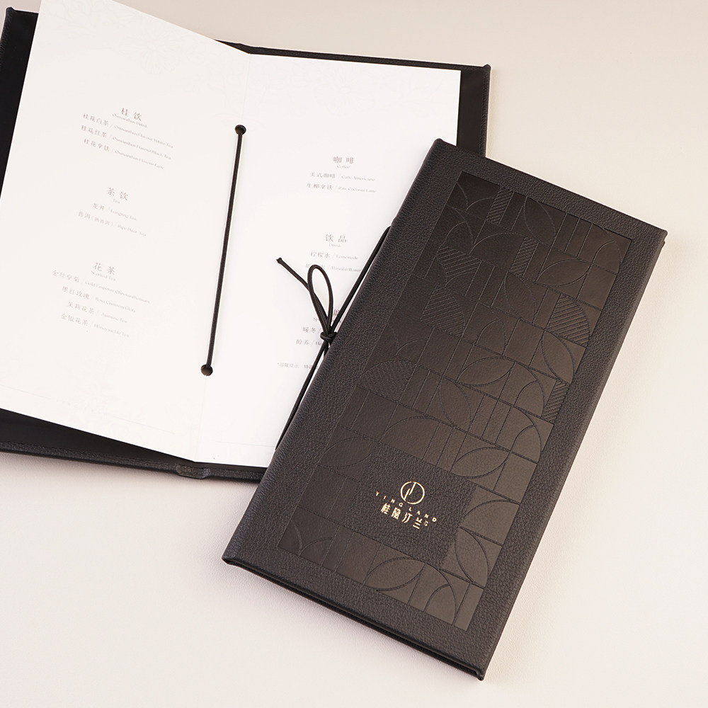 高档皮面封壳菜单本设计定制活页绑绳款茶楼茶馆茶水单餐牌点餐本印刷特色餐厅西餐日韩料理网红菜谱制作