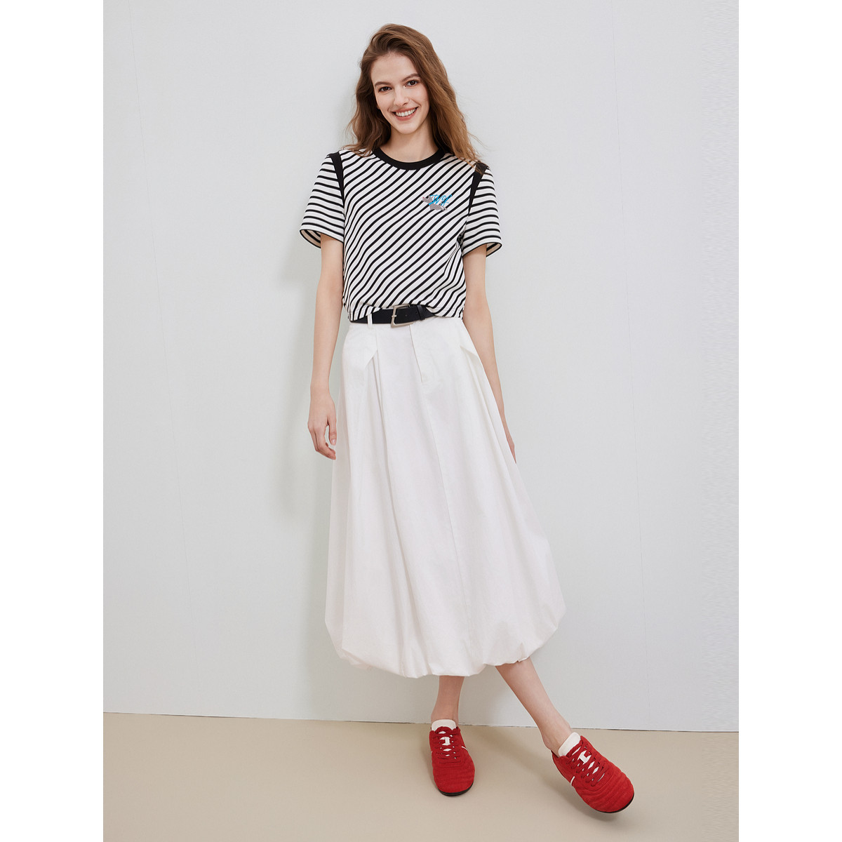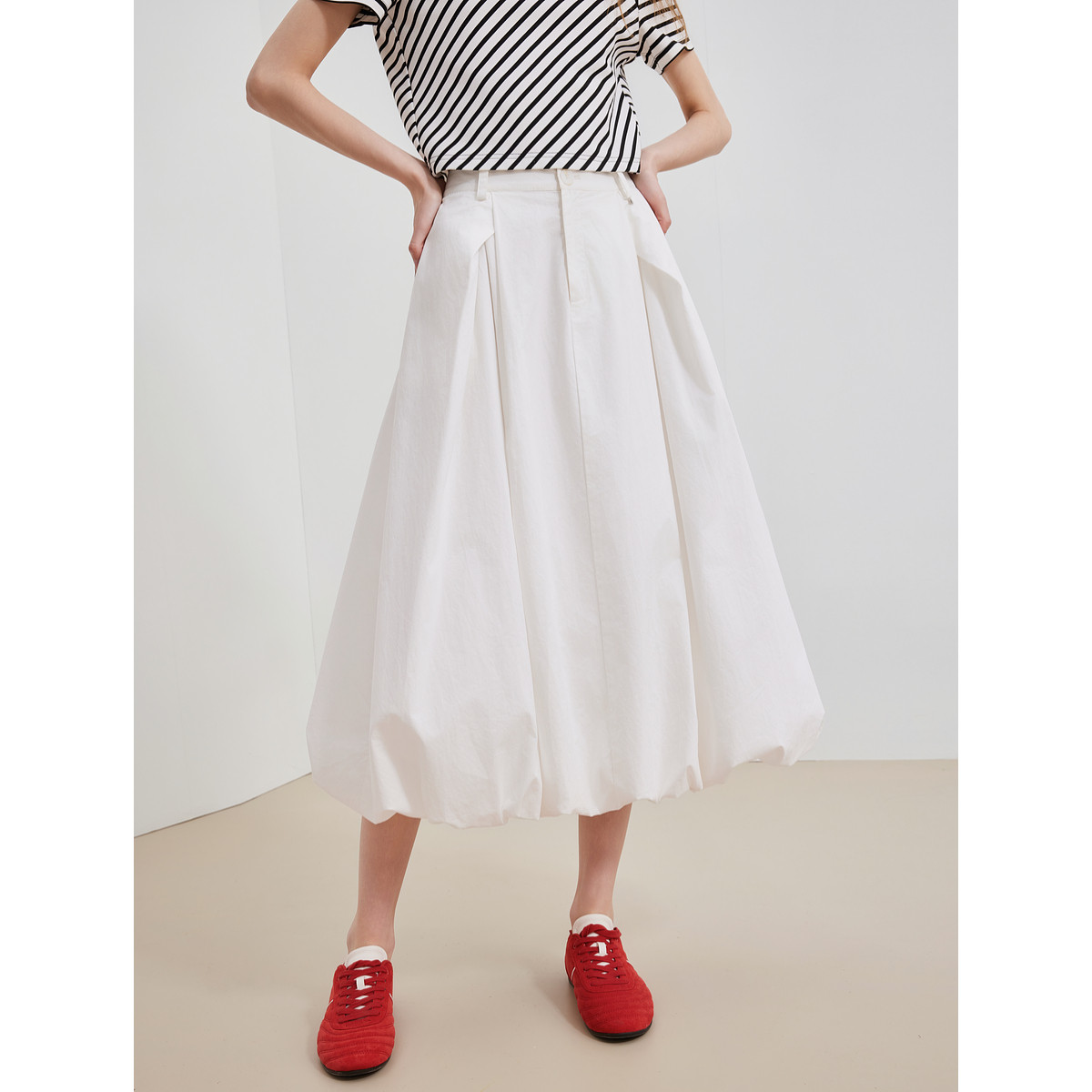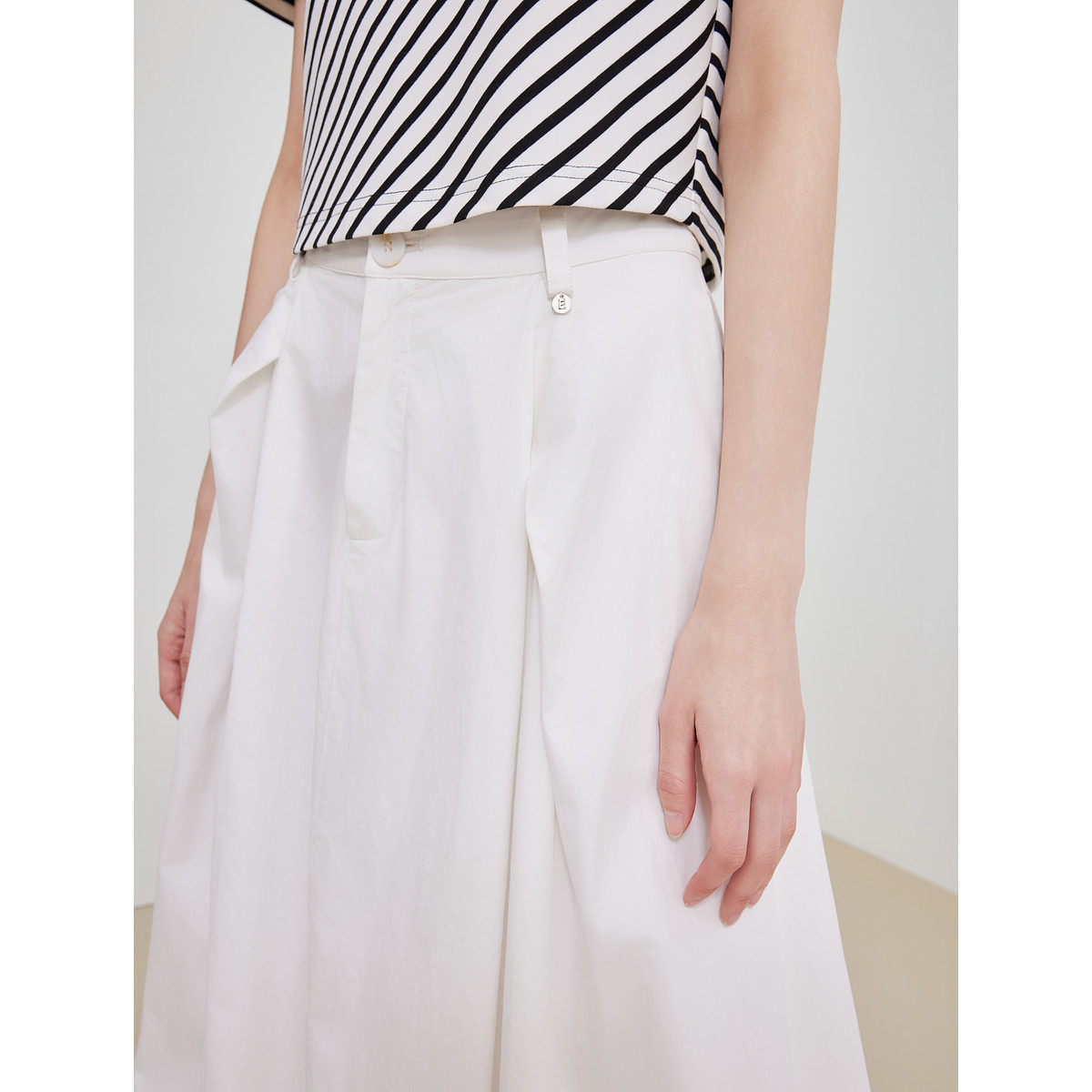 ELLE法式白色优雅半身裙女2025夏季新款设计感高腰简约显瘦花苞裙