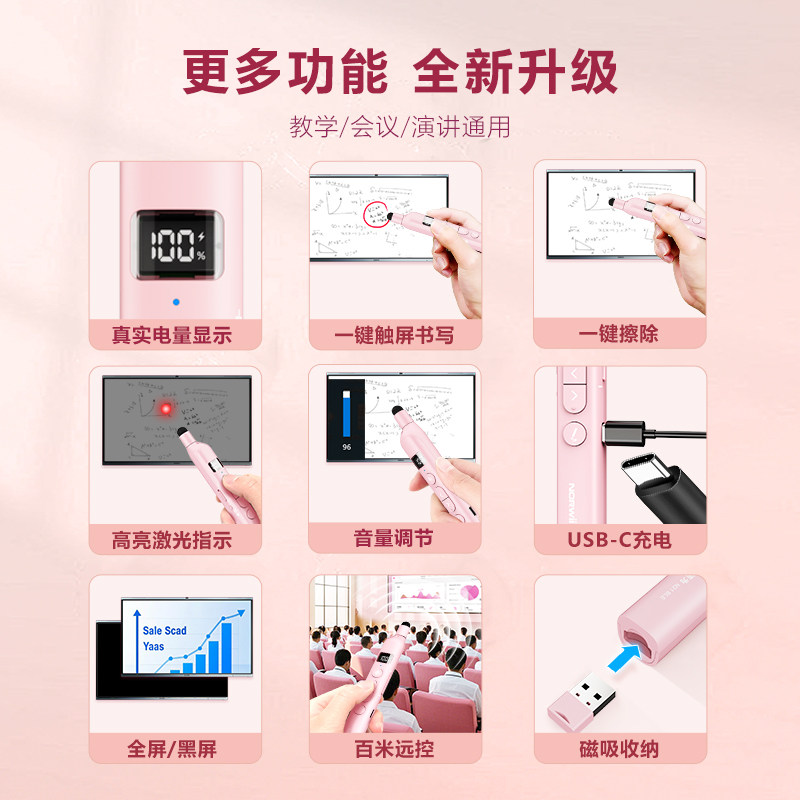 诺为N21BLE蓝牙连接伸缩教鞭翻页笔教师课件用适用希沃一体机触屏