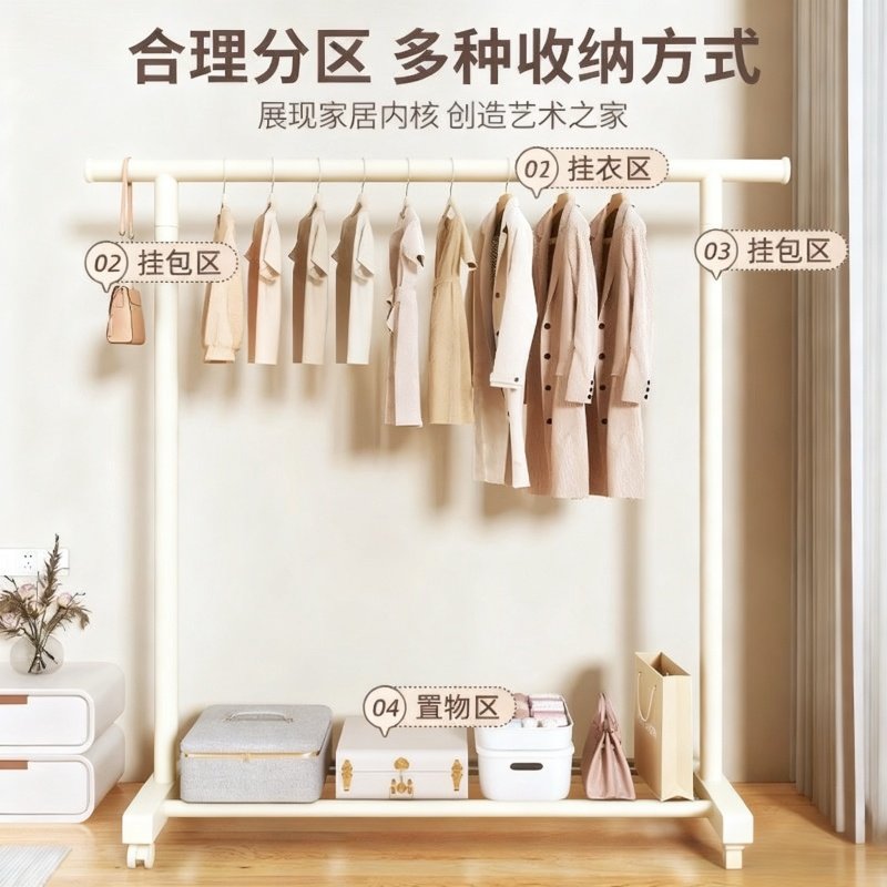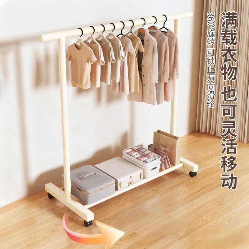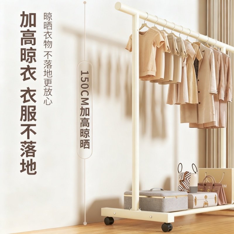 晾衣架落地卧室阳台家用简易挂衣杆子加粗晒被子神器可移动衣帽架