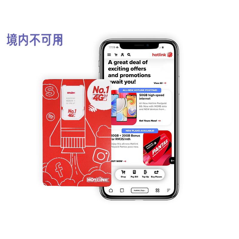 马来西亚电话卡hotlink手机上网卡4G/5G可选100GB流量5/6/7/29天