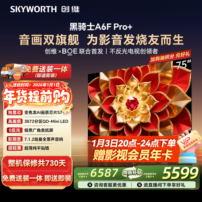 创维A6F Pro+ 75英寸 Mini LED内置回音壁电视机 以旧换新补贴