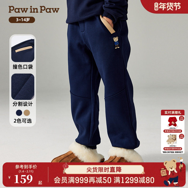 PawinPaw卡通小熊童装秋冬男童加绒针织裤休闲百搭长裤